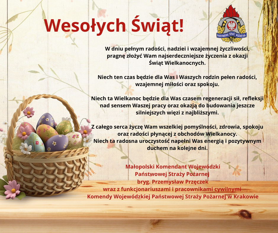 Życzenia Małopolskiego Komendanta Wojewódzkiego Państwowej Straży Pożarnej z okazji Świąt Wielkanocnych 29.03.2024 Materiały Wesołych_Świąt! Wesołych_Świąt!.png 1.32MB