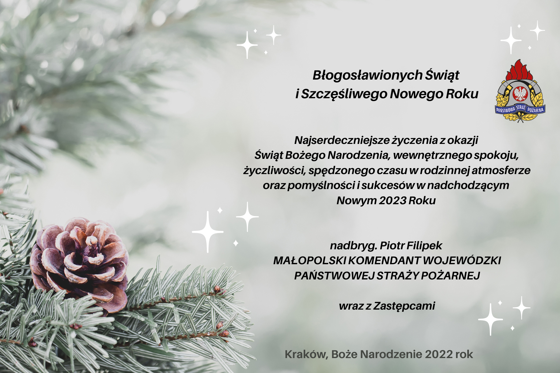 Życzenia świąteczno - noworoczne Ministra Spraw Wewnętrznych i Administracji Mariusza Kamińskiego, Komendanta Głównego PSP gen. brygadiera Andrzeja Bartkowiaka oraz Małopolskiego Komendanta Wojewódzkiego PSP nadbryg. Piotra Filipka.