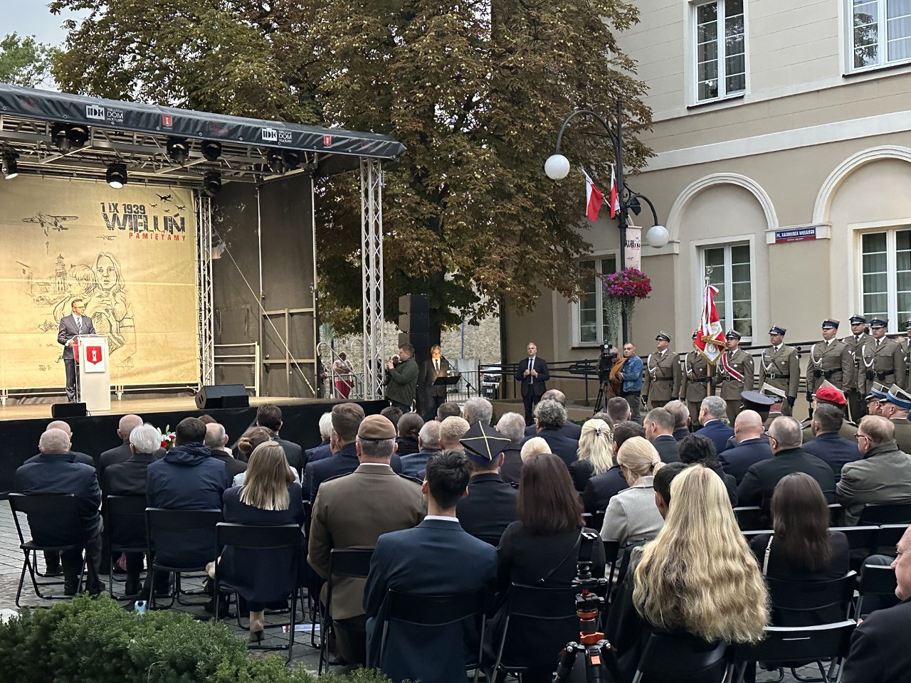 Uroczystości odbyły się na placu Kazimierza Wielkiego, w miejscu szczególnie związanym z nalotem Luftwaffe z 1 września 1939 roku, uznawanym przez historyków za jedną z pierwszych zbrodni wojennych II wojny światowej. W wydarzeniu wzięli udział przedstawiciele władz państwowych, m.in. wicepremier Krzysztof Gawkowski, wojewoda łódzka Dorota Ryl, parlamentarzyści, samorządowcy, duchowieństwo oraz mieszkańcy miasta.