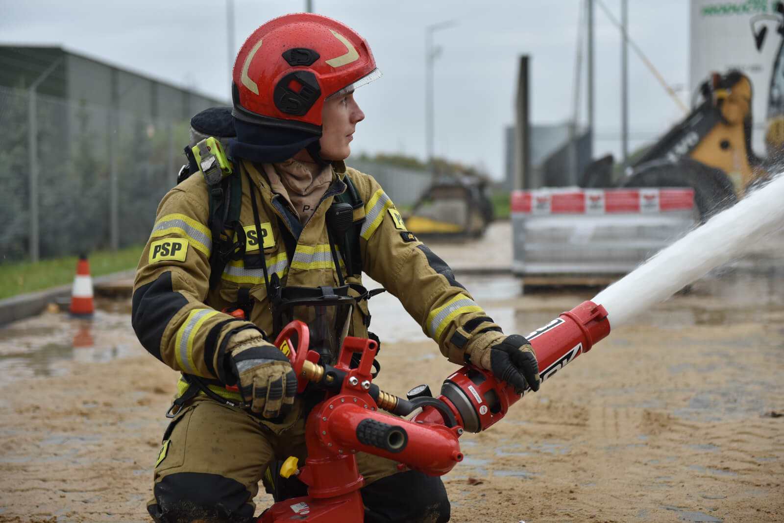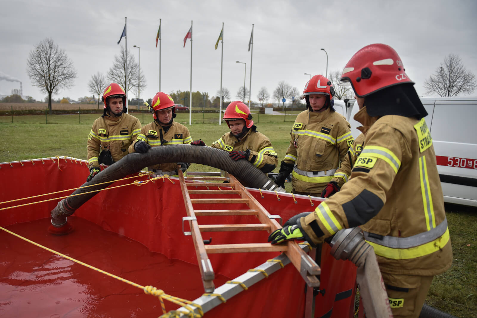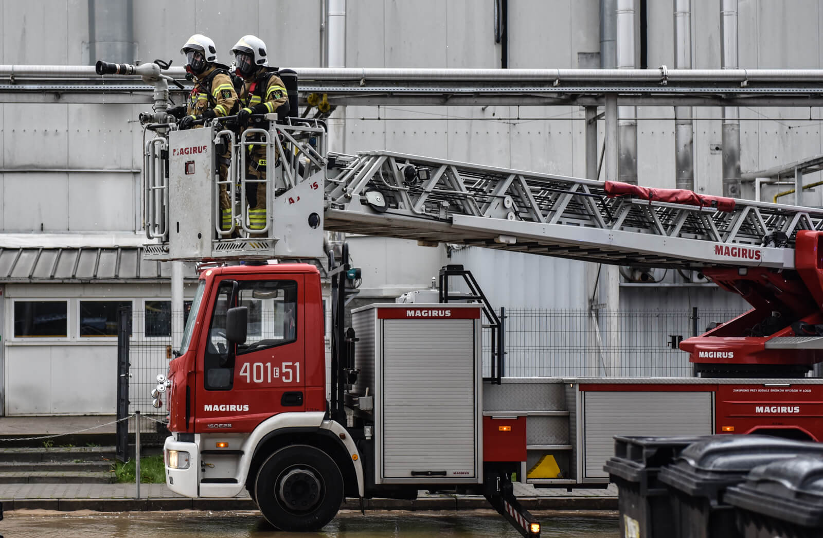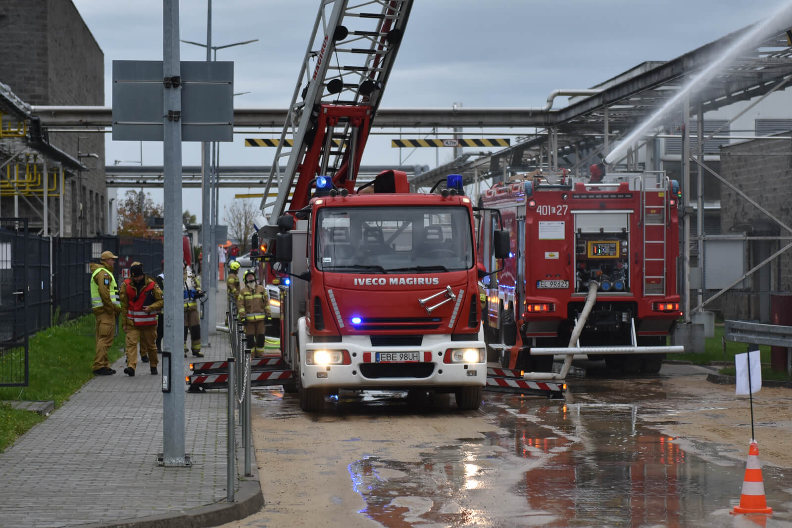 - ręczne uruchomienie instalacji zraszaczy zbiorników LPG (zadania było realizowane przez strażaków w ubraniach żaroodpornych),