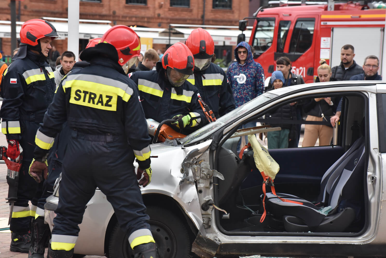 Wszyscy mieli okazję zapoznać się ze sprzętem używanym do gaszenia pożarów, ratowania ludzi i usuwania zagrożeń. Można było również obejrzeć pokazy cięcia pojazdów oraz ratownictwa chemicznego w wykonaniu strażaków z grup specjalistycznych ratownictwa technicznego i chemiczno-ekologicznego. Dużym zainteresowaniem cieszyły się pokazy spalania tłuszczy jadalnych oraz wybuchy dezodorantu przygotowane przez instruktorów z Ośrodka Szkolenia KW PSP w Łodzi.