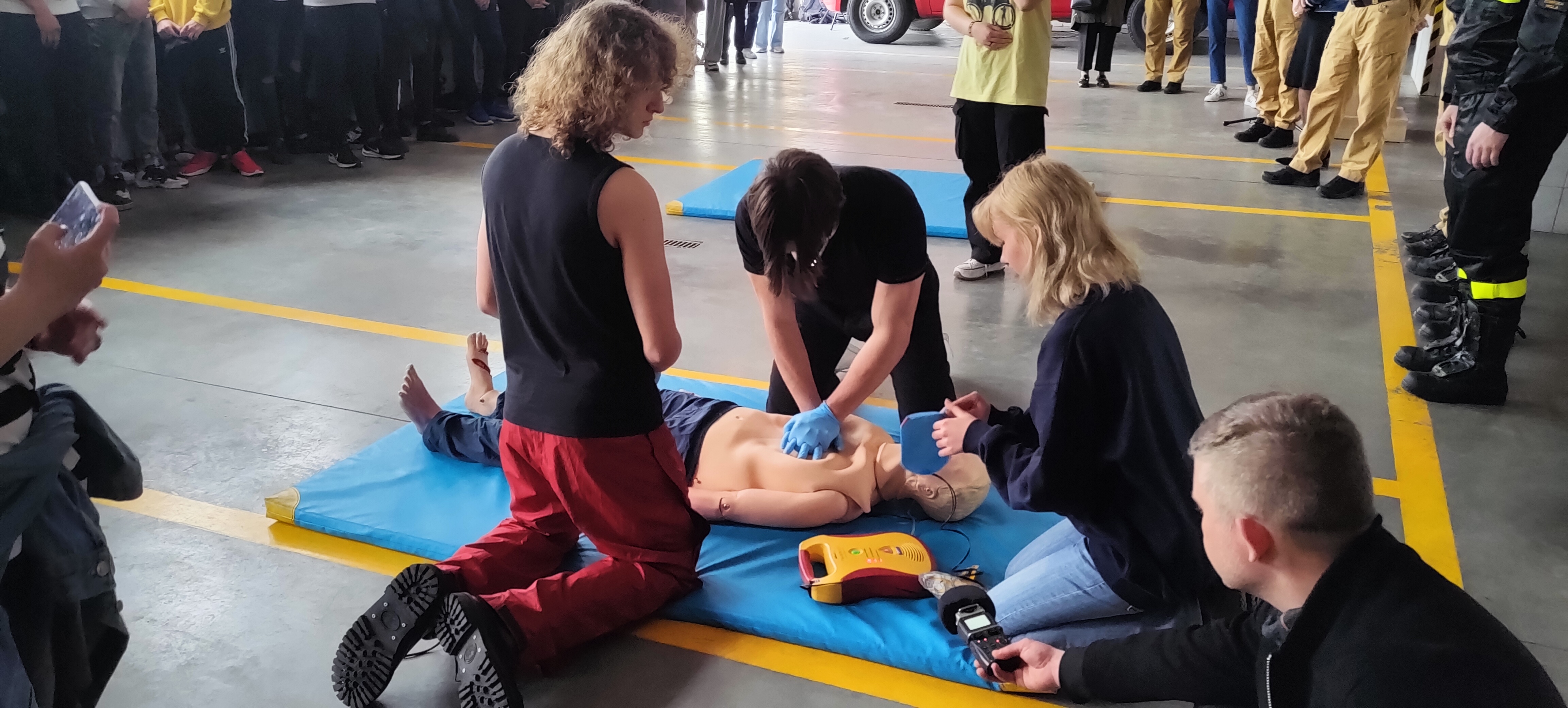 26 kwietnia 2023r. na terenie Komendy Powiatowej Państwowej Straży Pożarnej w Zduńskiej Woli, odbył się finał XIII edycji projektu "Młodzież i pierwsza pomoc".