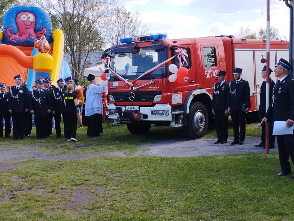 Jednym z elementów uroczystości było przekazanie średniego samochodu ratowniczo -gaśniczego na podwoziu Mercedes.