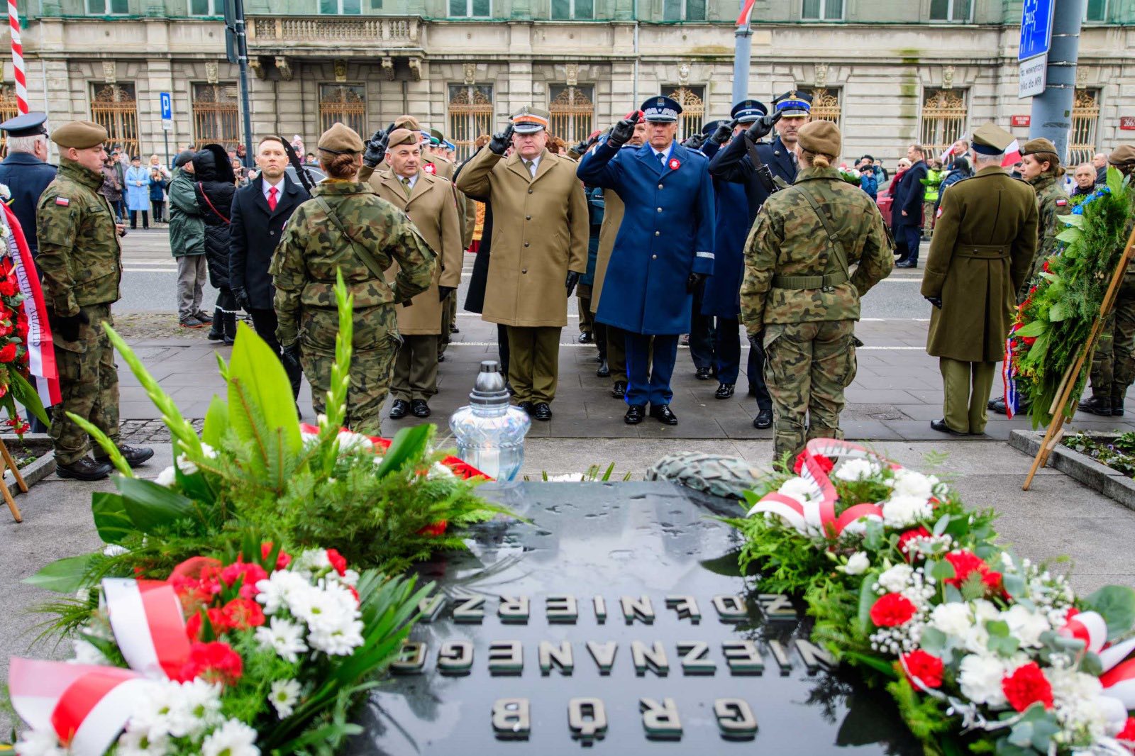 Państwową Straż Pożarną reprezentował st. bryg. Marcin Dulas Łódzki Komendant Wojewódzki PSP wraz z kompanią honorową Komendy Wojewódzkiej PSP w Łodzi. Strażacy uczestniczyli w apelu pamięci i salwie honorowej, oddając hołd bohaterom walk o wolność i niepodległość Polski.
