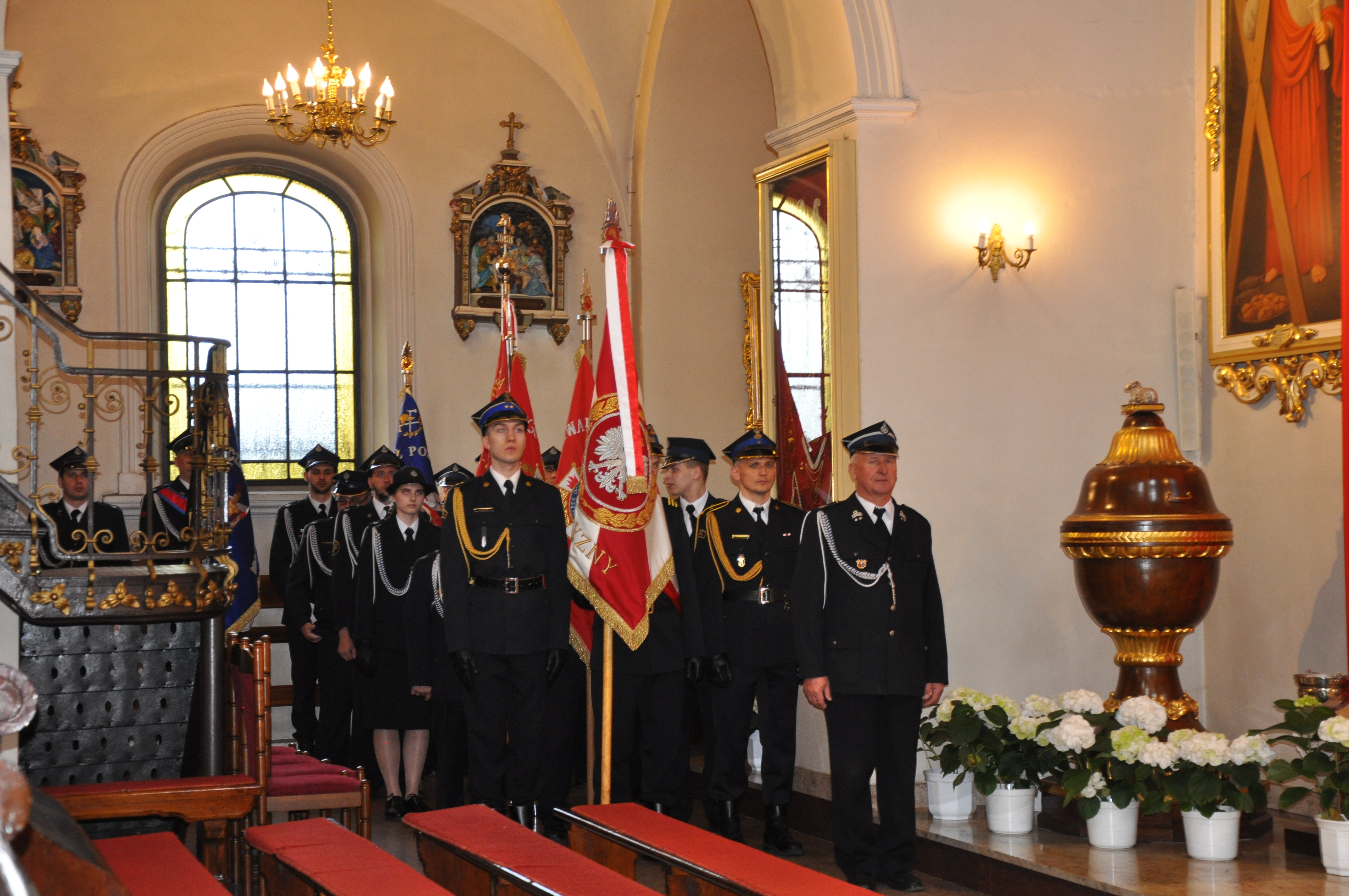 Mszę Świętą poprzedziło odsłonięcie pamiątkowej tablicy przy budynku Ochotniczej Straży Pożarnej w Dmosinie z okazji 100-lecia powołania jednostki, po której nastąpił uroczysty przemarsz pododdziałów do kościoła na nabożeństwo. Nie zabrakło też podziękowań strażakom za trud i ofiarność w pełnieniu służby i działalność społeczną ukierunkowaną na zapewnienie bezpieczeństwa naszym mieszkańcom.