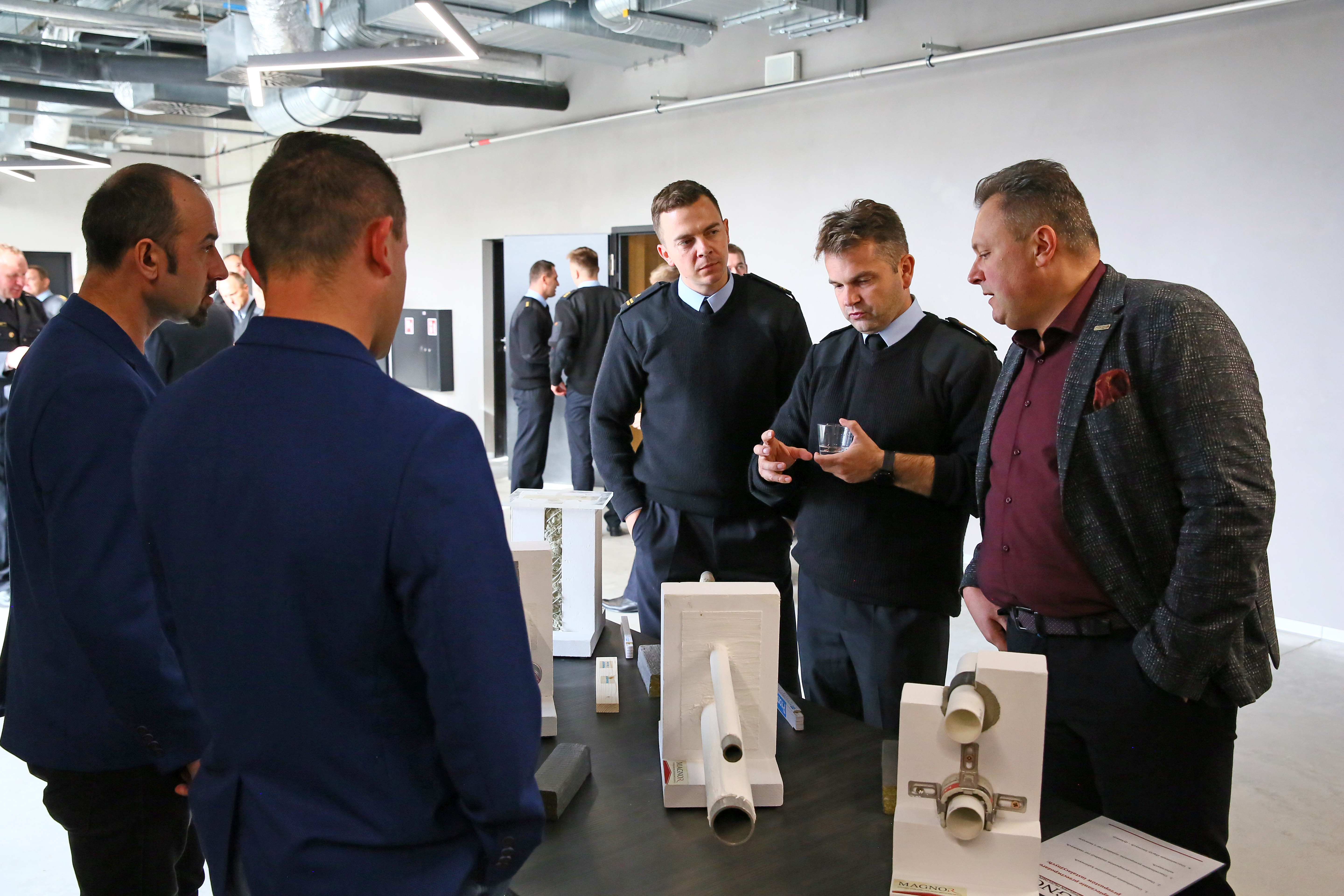 Warto również wspomnieć, że w przerwach pomiędzy wykładami, na specjalnych stanowiskach tematycznych, uczestnicy mogli zapoznać się ze specyfiką określonego rodzaju rozwiązań technicznych z zakresu instalacji fotowoltaicznych, biernych zabezpieczeń przeciwpożarowych oraz systemów sygnalizacji pożarowej. Wartym odnotowania jest także pokaz nowej technologii wykrywania pożarów - videodetekcji, która może być z powodzeniem wykorzystywana do nadzorowania otwartych przestrzeni o względnie dużych rozmiarach (np. składowiska odpadów).