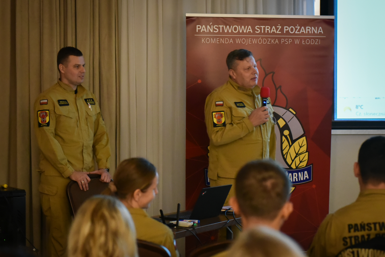 W drugim dniu w naradzie szkoleniowej udział wzięło prawie 100 osób mających na co dzień, z uwagi na wykonywaną profesję, istotny wpływ na kształtowanie stanu bezpieczeństwa pożarowego w obiektach budowlanych i na terenach z obszaru województwa łódzkiego.