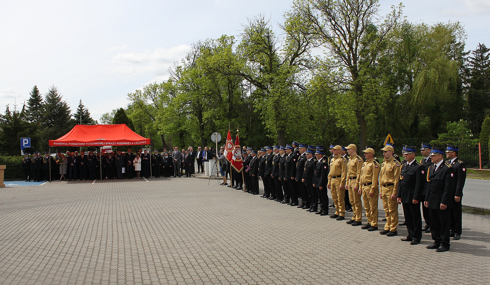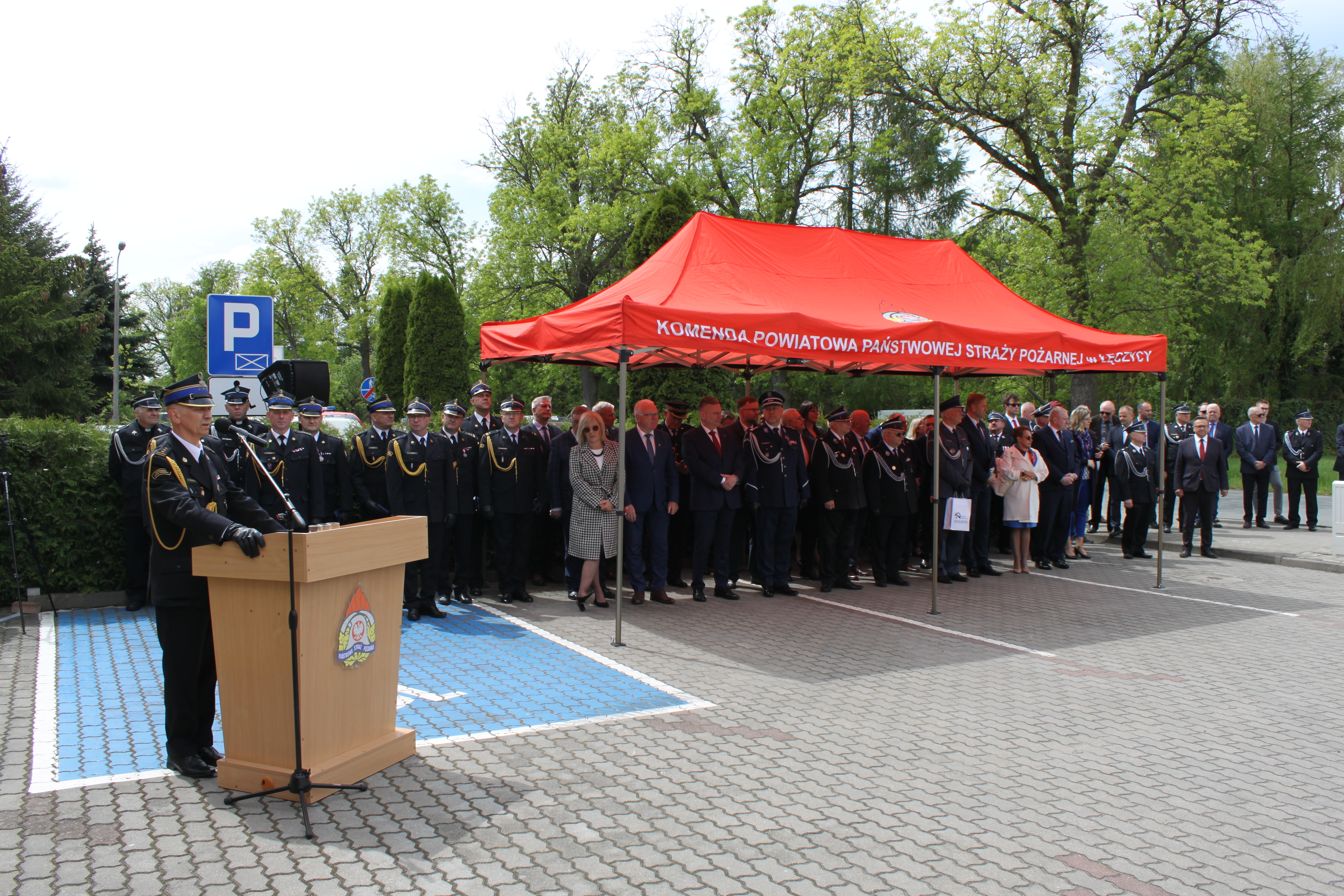 Rozpoczynając uroczystość komendant powiatowy Państwowej Straży Pożarnej w Łęczycy bryg. Piotr Jóźwiak poprosił o uczczenie minutą ciszy zmarłego w marcu tego roku byłego komendanta powiatowego Państwowej Straży Pożarnej w Łęczycy mł. bryg. w st. spocz. Wojciecha Pernala oraz zmarłych strażaków i druhów OSP z terenu powiatu łęczyckiego.