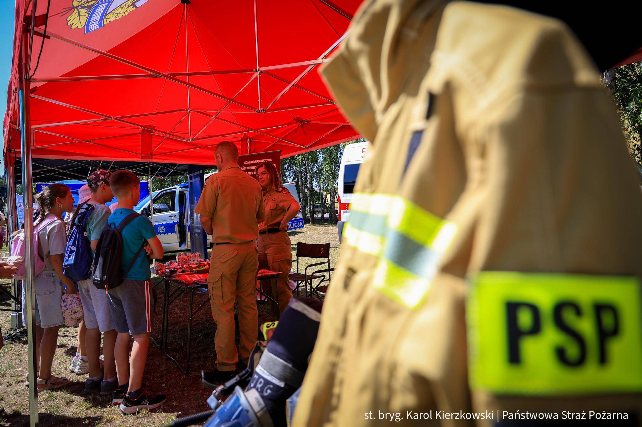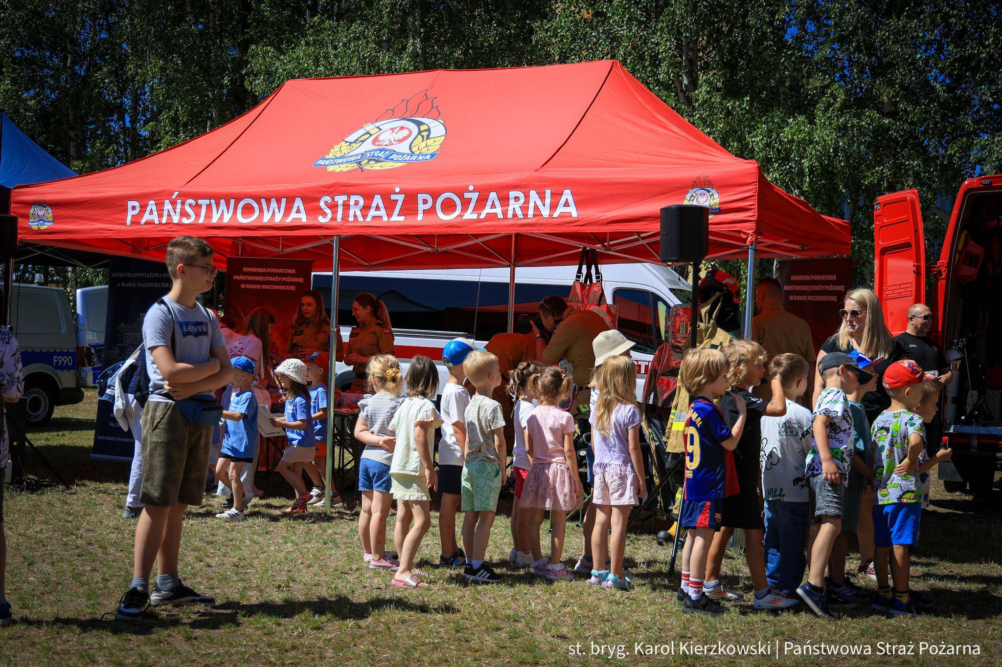 Funkcjonariusze Komendy Powiatowej Państwowej Straży Pożarnej w Rawie Mazowieckiej aktywnie uczestniczyli w wydarzeniu, prowadząc pokazy i działania edukacyjne skierowane do najmłodszych uczestników. Strażacy przekazywali wiedzę na temat zasad bezpiecznego wypoczynku, reagowania w sytuacjach zagrożenia oraz zasad udzielania pierwszej pomocy. Stoisko PSP cieszyło się dużym zainteresowaniem zarówno wśród dzieci, jak i dorosłych.