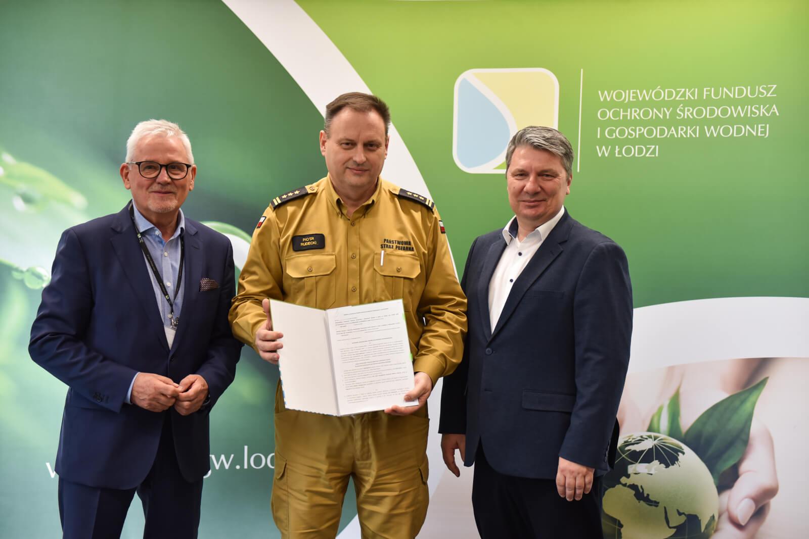 24 kwietnia 2024 roku w siedzibie Wojewódzkiego Funduszu Ochrony Środowiska i Gospodarki Wodnej w Łodzi st. bryg. Piotr Rudecki łódzki komendant wojewódzki PSP w Łodzi oraz Piotr Kopek Prezes Zarządu WFOŚiGW w Łodzi, podpisali umowę na realizację zadania „Zakup samochodów ratowniczo-gaśniczych, specjalnych i sprzętu dla jednostek Państwowej Straży Pożarnej województwa łódzkiego”.