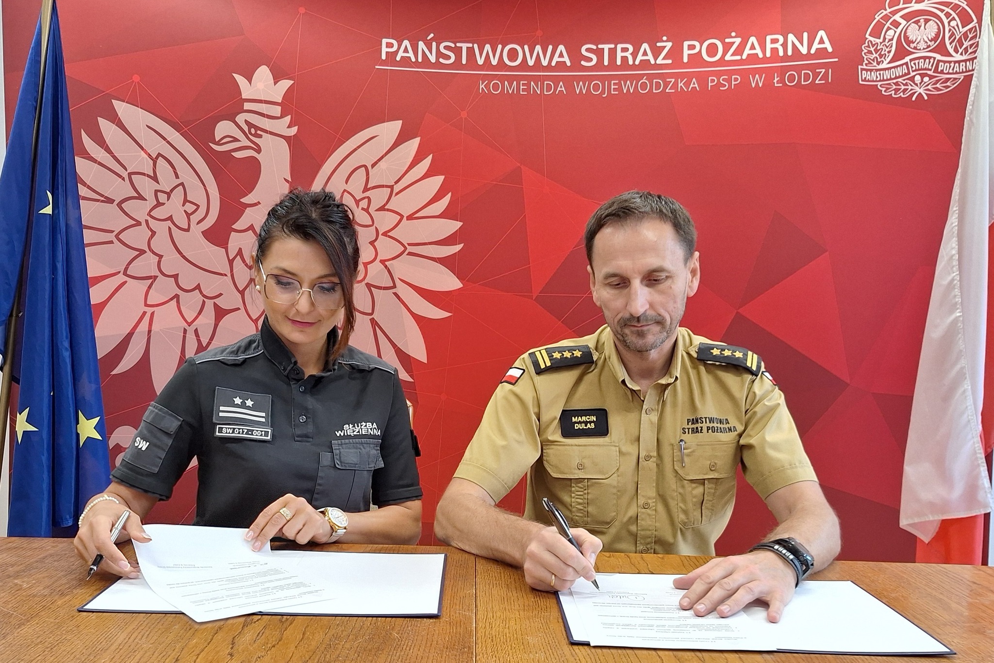 9 września st. bryg. Marcin Dulas Łódzki Komendant Wojewódzki PSP w Łodzi oraz ppłk Małgorzata Banasiak Dyrektor Okręgowa Służby Więziennej w Łodzi podpisali porozumienie, którego celem jest nawiązanie i rozwijanie współpracy pomiędzy służbami w zakresie zapewnienia bezpieczeństwa pożarowego, ochrony życia i zdrowia ludzi oraz mienia na terenie jednostek penitencjarnych, a także doskonalenia zasad współdziałania w zakresie działań ratowniczo – gaśniczych, prewencyjnych i szkoleniowych.
