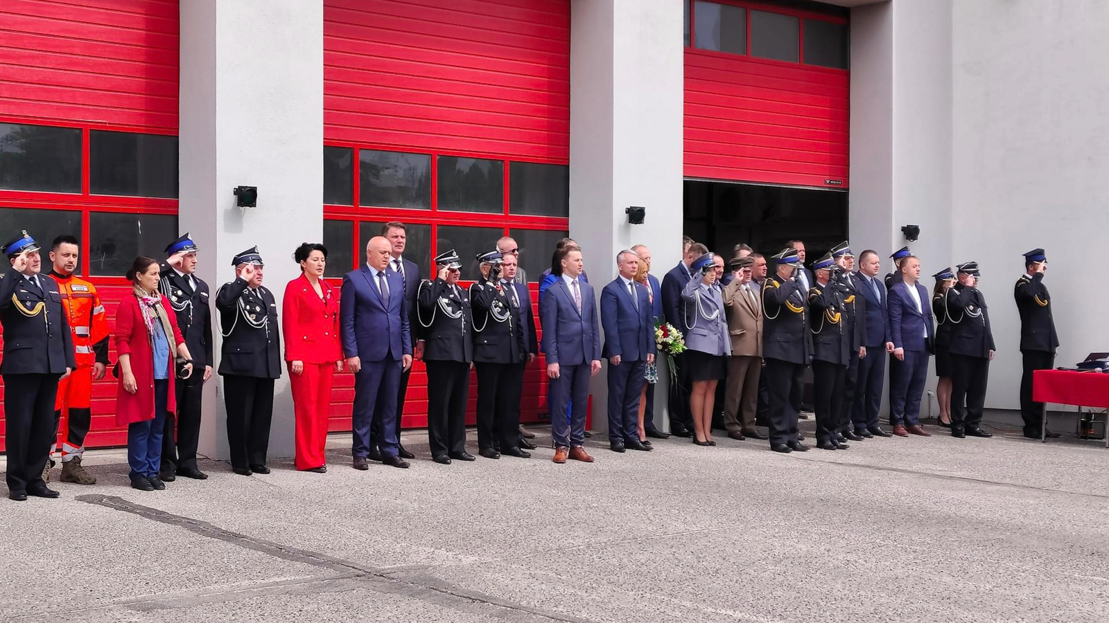 Uroczystość rozpoczęła się od złożenia meldunku st. bryg. Zbigniewowi Łyszkowiczowi zastępcy łódzkiego komendanta wojewódzkiego PSP w Łodzi, przez dowódcę uroczystości st. kpt. Macieja Połcia. Po odegraniu hymnu i podniesieniu flagi państwowej na maszt w imieniu Komendanta Powiatowego PSP w Opocznie st. bryg. Dariusza Polańskiego zaproszonych gości przywitał st. kpt. Krzysztof Juszczak Zastępca Komendanta Powiatowego PSP w Opocznie.