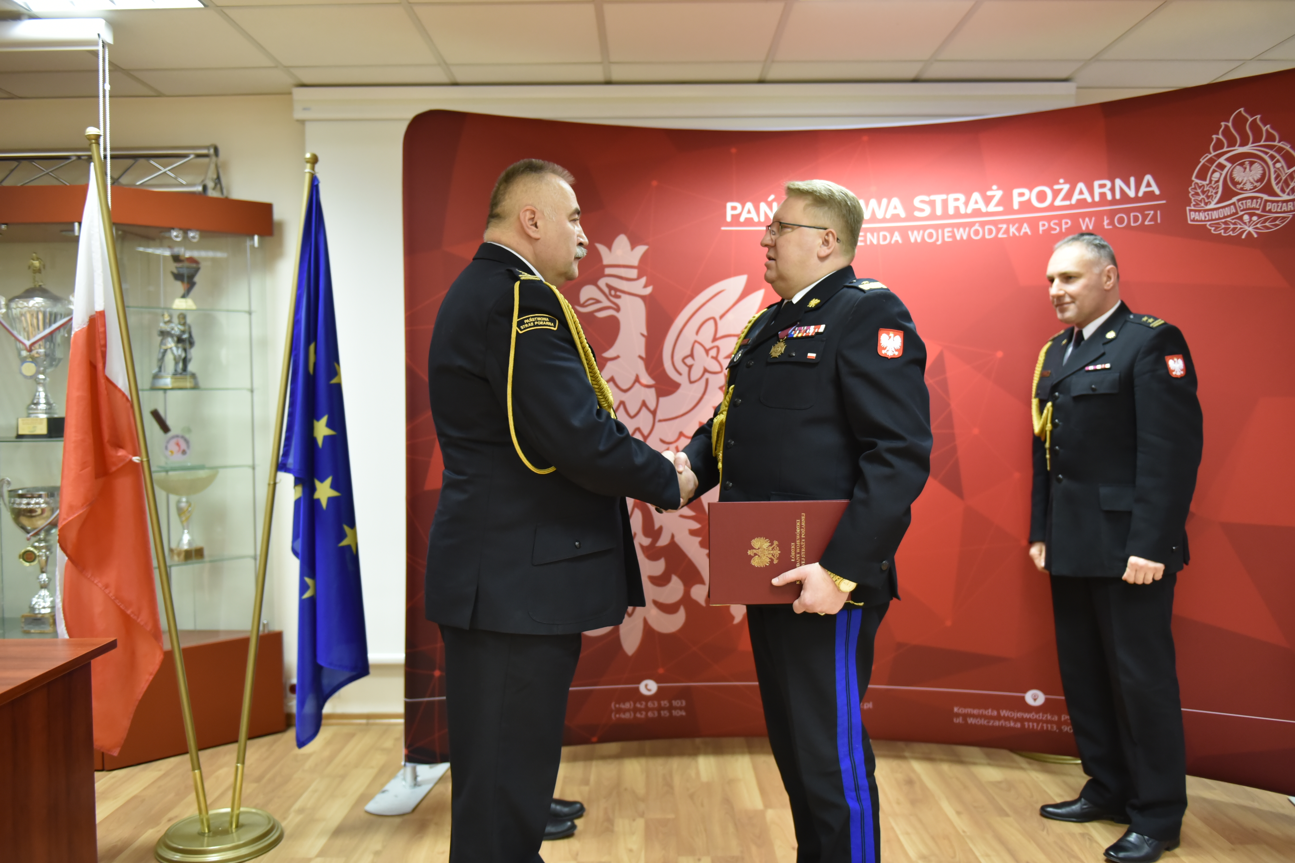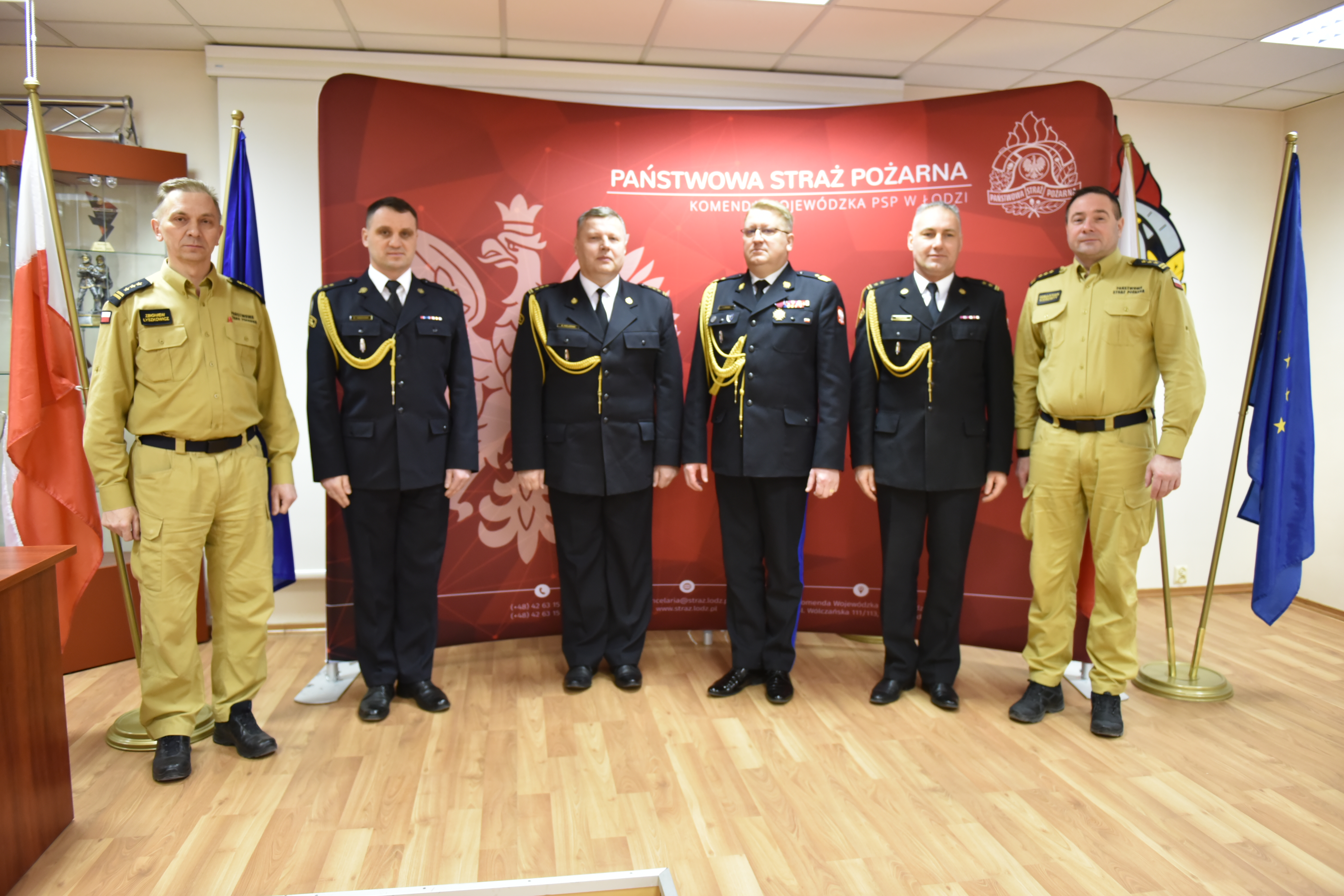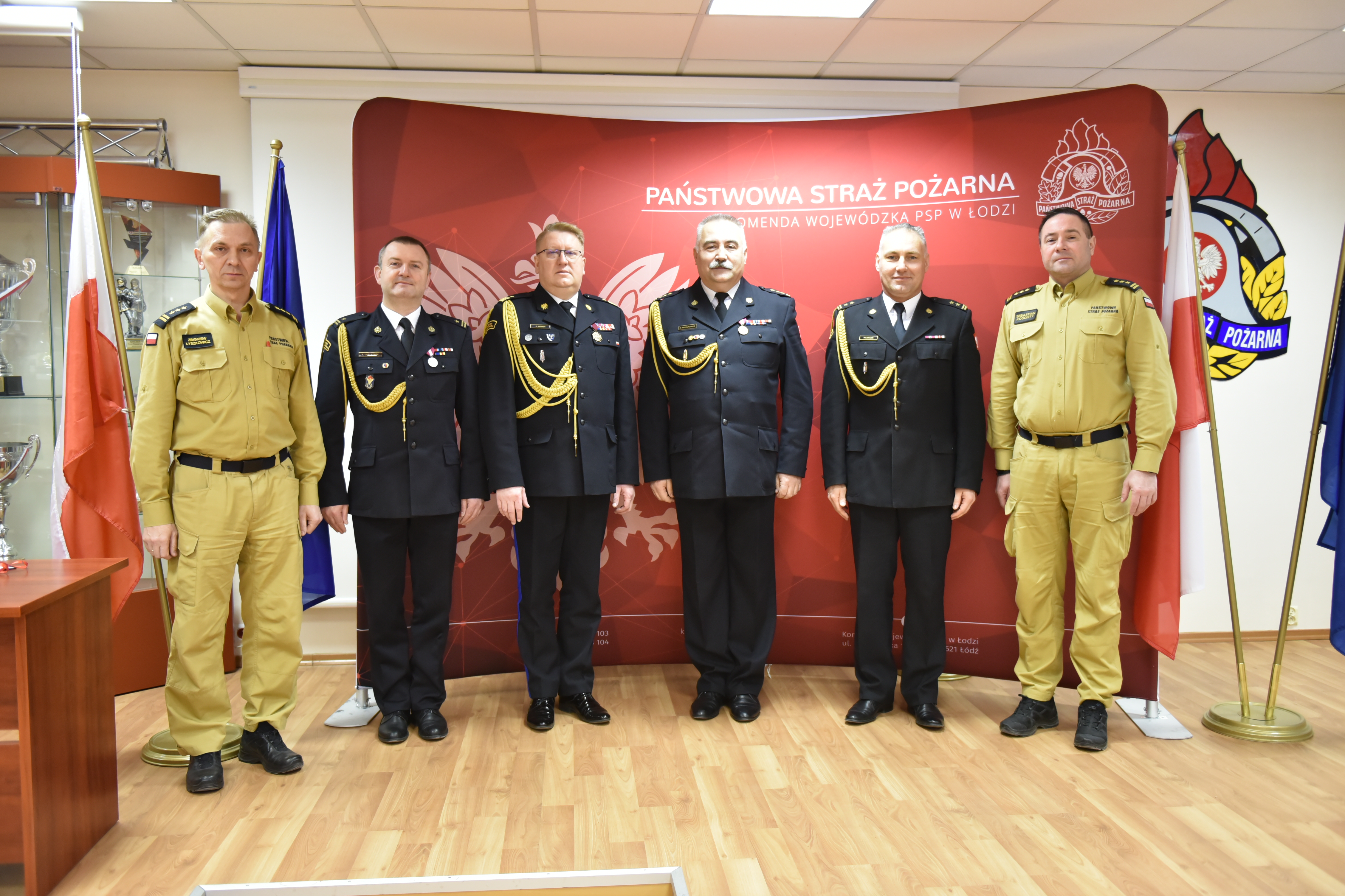 W spotkaniu uczestniczyli również st. bryg. Zbigniew Łyszkowicz i st. bryg. Sebastian Kościsty zastępcy łódzkiego komendanta wojewódzkiego PSP w Łodzi oraz bryg. Piotr Łukasik naczelnik Wydziału Kadr Komendy Wojewódzkiej PSP w Łodzi.