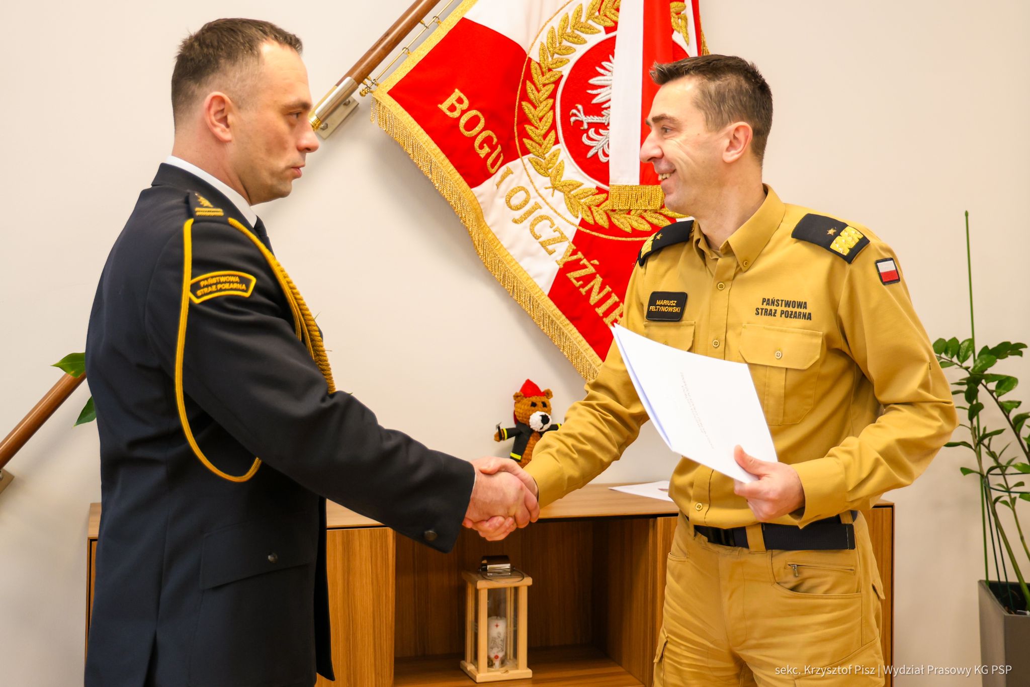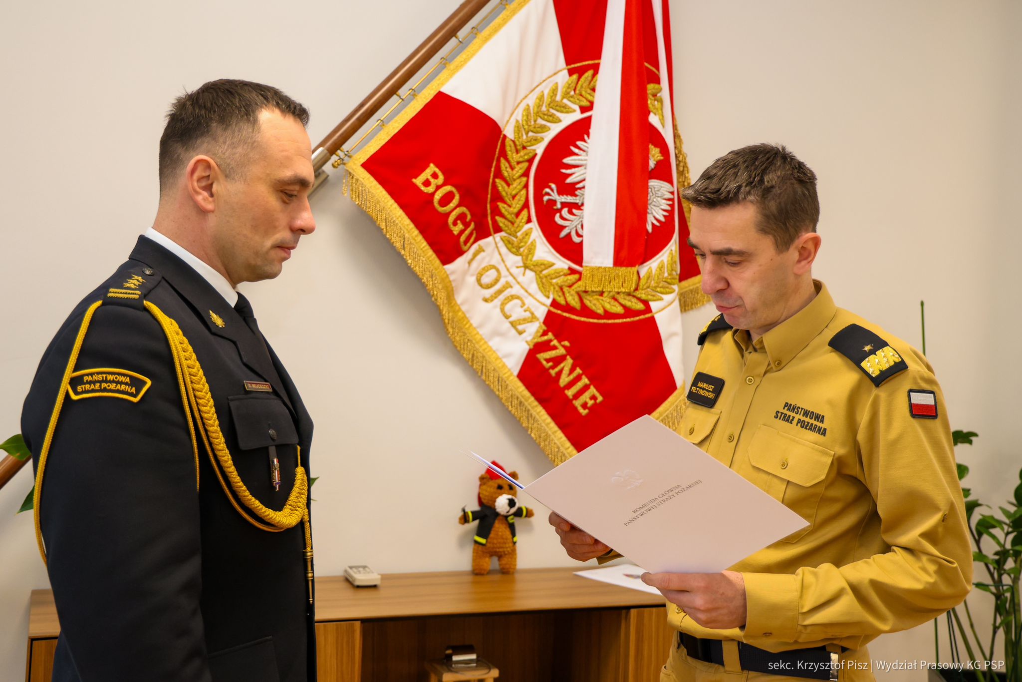 Decyzja personalna, w obecności st. bryg. Piotra Rudeckiego łódzkiego komendanta wojewódzkiego PSP w Łodzi, została wręczona w siedzibie Komendy Głównej PSP.
