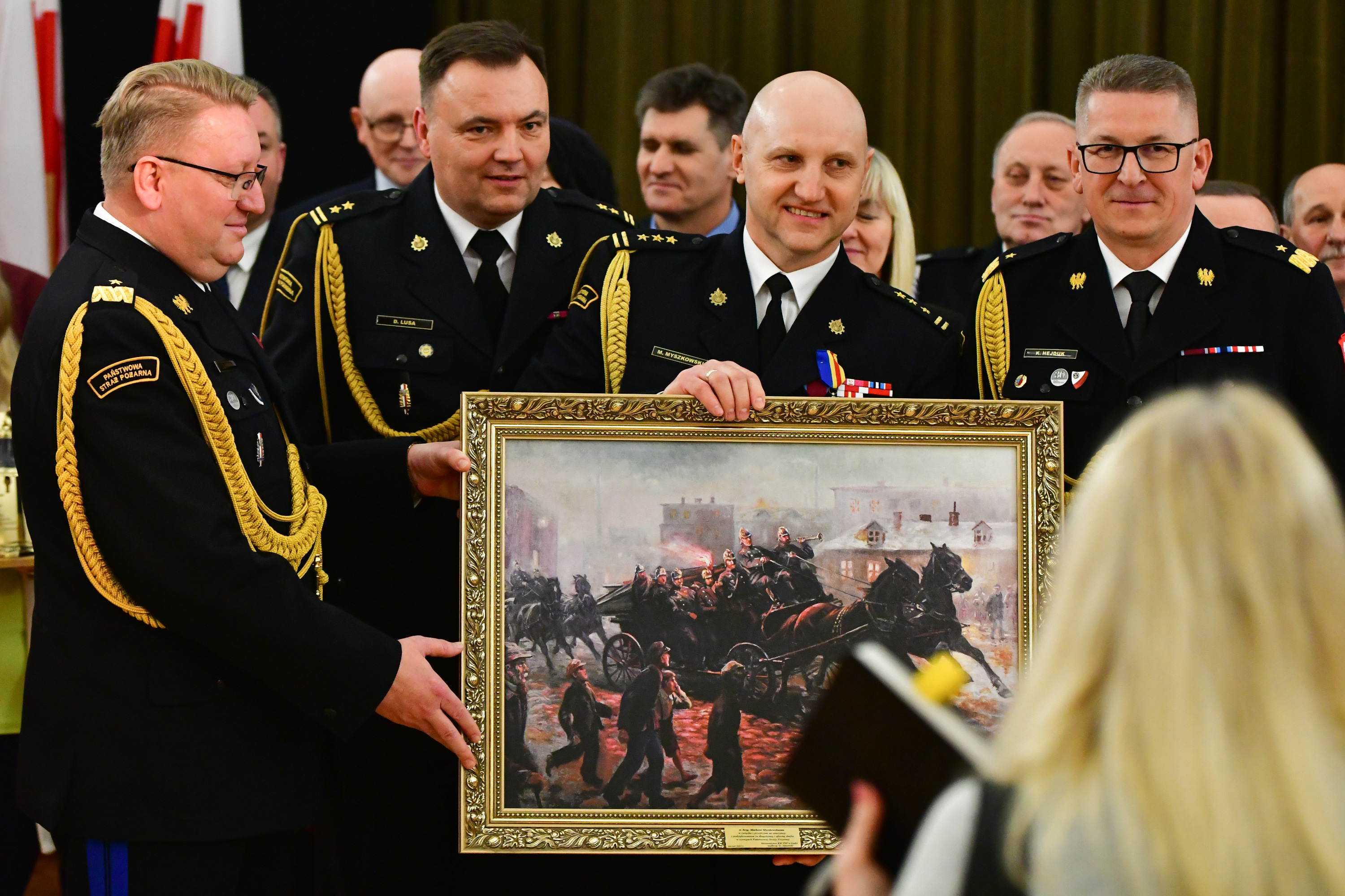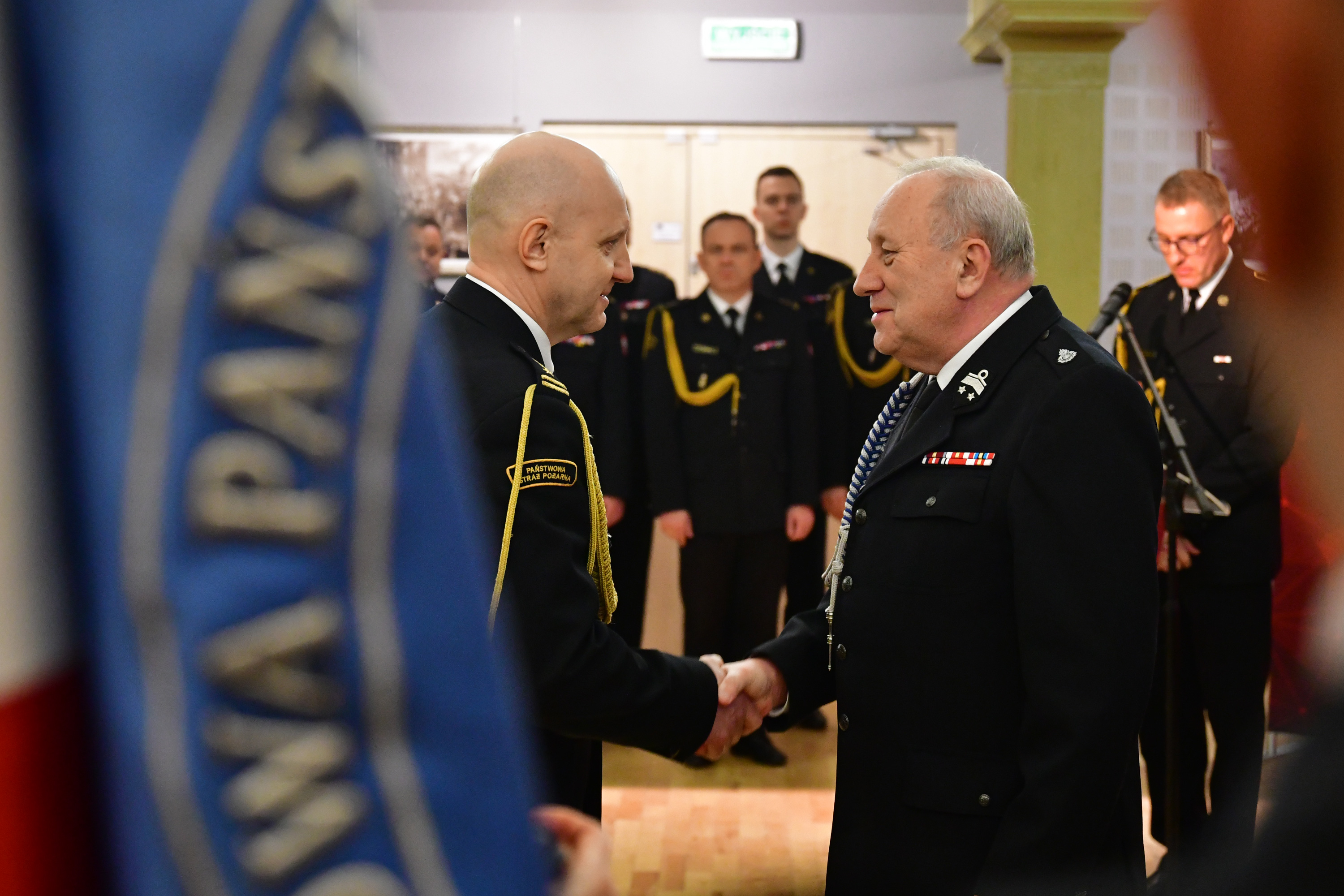 Podczas dalszej części uroczystej zbiórki Daniel Kowalik Starosta Kutnowski, odznaczył st. bryg. Marka Myszkowskiego medalem „Zasłużony dla powiatu kutnowskiego” za szczególne zasługi na rzecz organizacji, funkcjonowania i rozwoju ochrony przeciwpożarowej na terenie powiatu kutnowskiego. Prezes Zarządu Oddziału Wojewódzkiego ZOSP RP nadbryg. w st. spocz. dh Tadeusz Karcz odznaczył st. bryg. Marka Myszkowskiego odznaką honorową „Zasłużony dla Ochrony Przeciwpożarowej Województwa Łódzkiego” za działalność przeciwpożarową i ratowniczą na terenie województwa łódzkiego.