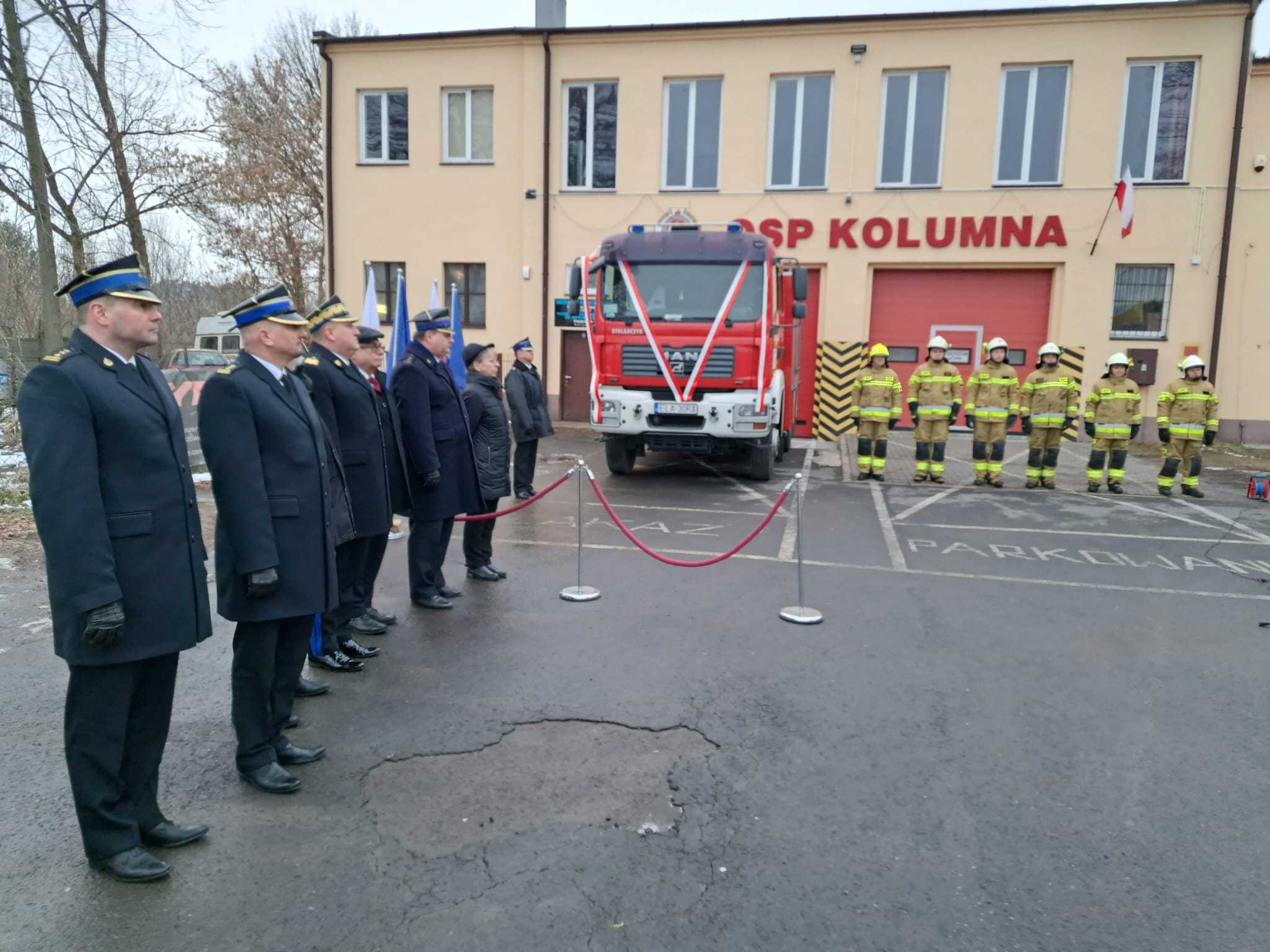 10 lutego na placu przed jednostką Ochotniczej Straży Pożarnej w Kolumnie (powiat łaski) odbyła się uroczystość oficjalnego przekazania średniego samochodu ratowniczo - gaśniczego GBA 2,5/16 na podwoziu MAN z Komendy Powiatowej Państwowej Straży Pożarnej w Łasku.