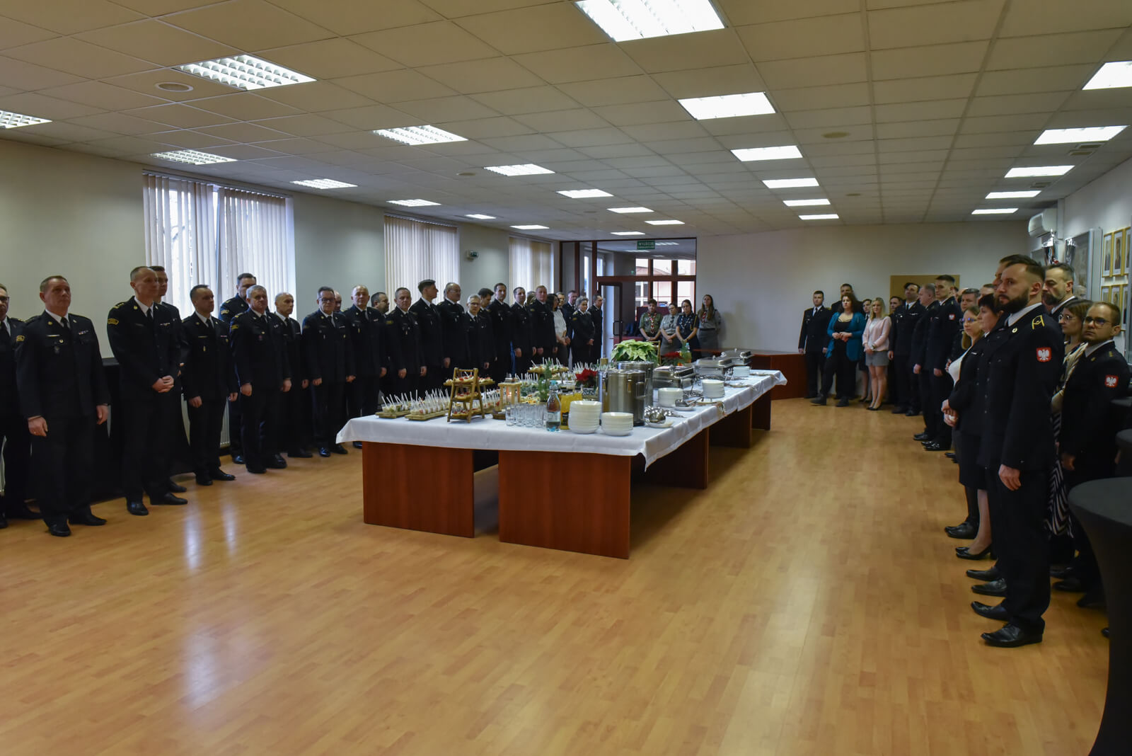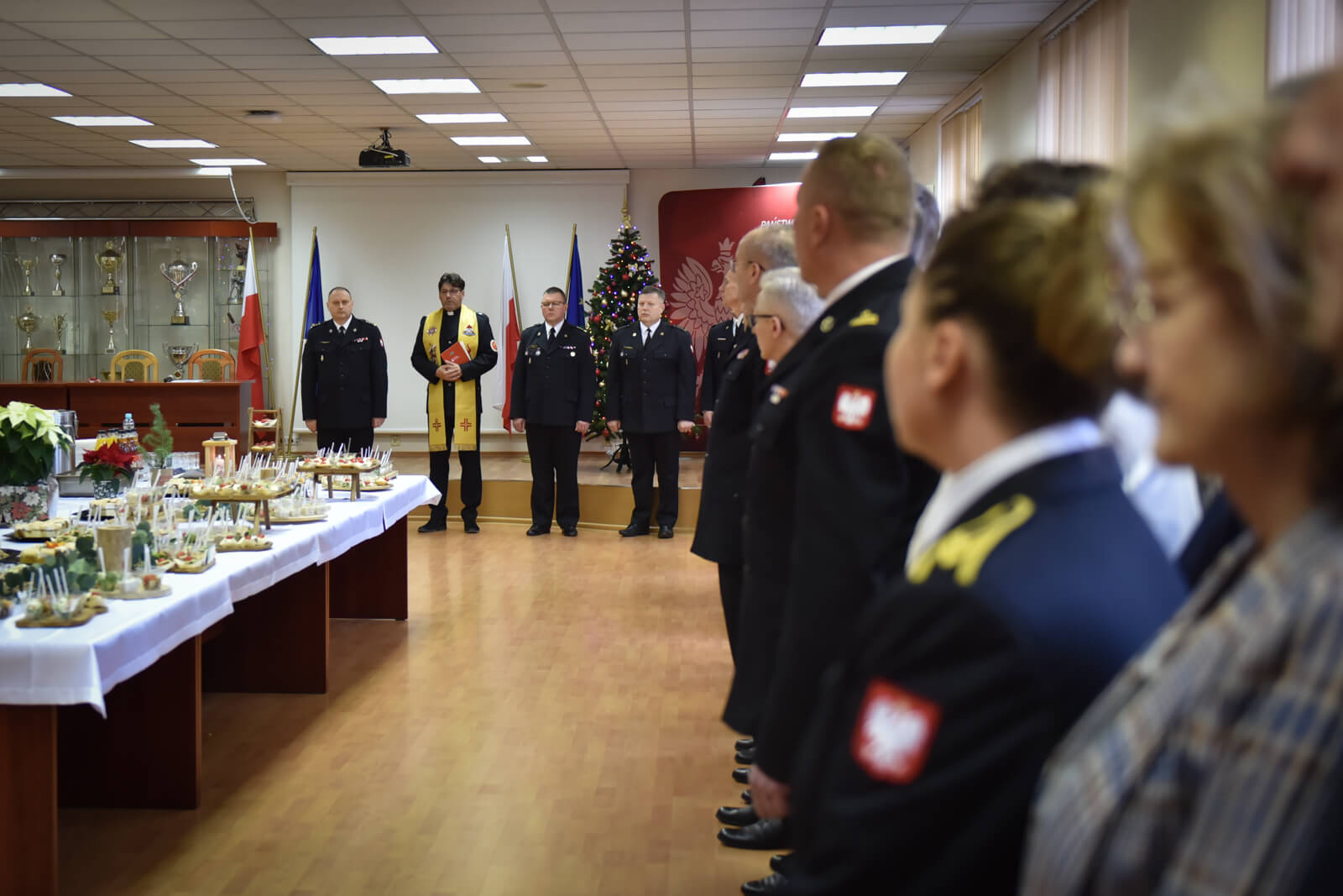 Następnie komendant wojewódzki PSP w imieniu własnym oraz swoich zastępców życzył wszystkim zgromadzonym zdrowych i spędzonym w rodzinnej atmosferze Świąt Bożego Narodzenia.