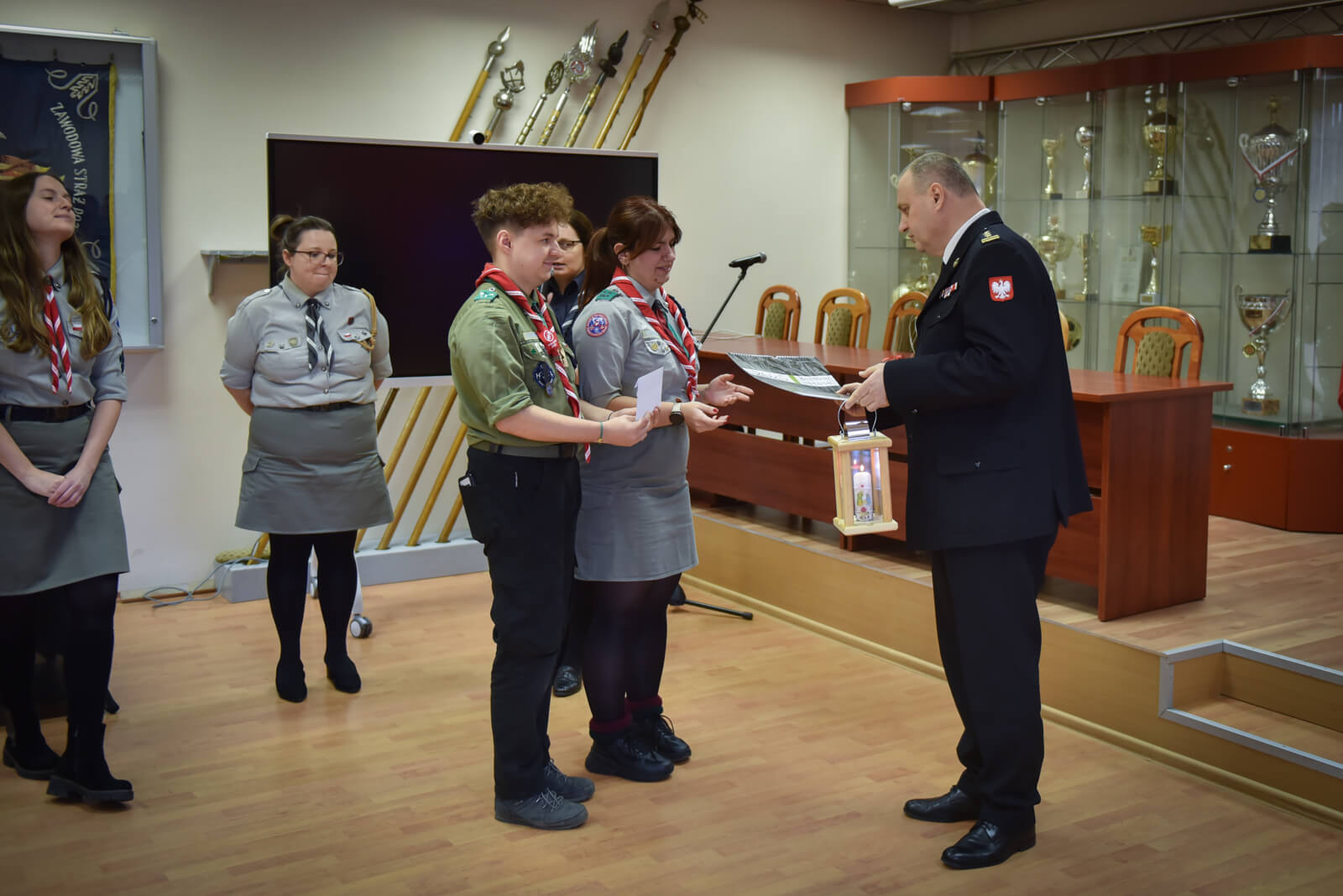 Spotkanie rozpoczęło się przekazaniem przez harcerzy łódzkiej Chorągwi ZHP, Betlejemskiego Światła Pokoju.