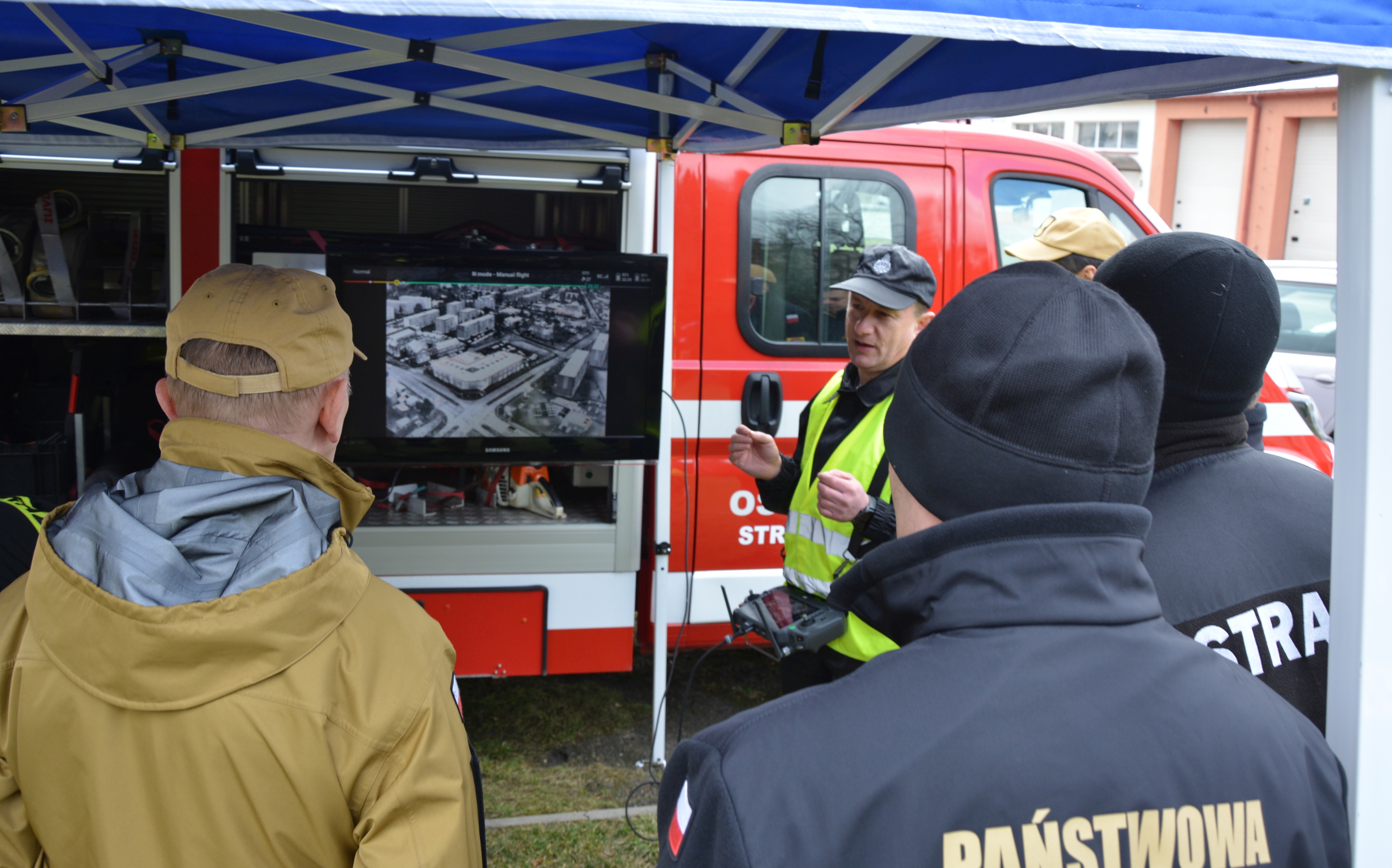 Prezentacja dronów z kamerami termowizyjnymi została połączona z dynamicznym pokazem ich możliwości. Dzięki takim urządzeniom ratownicy są w stanie szybko przeszukać obszar i zlokalizować osoby lub źródła pożaru, co w sposób znaczący podnosi skuteczność prowadzonych działań. Wykorzystanie dronów to innowacyjne rozwiązanie, które może w przyszłości zrewolucjonizować ratownictwo.