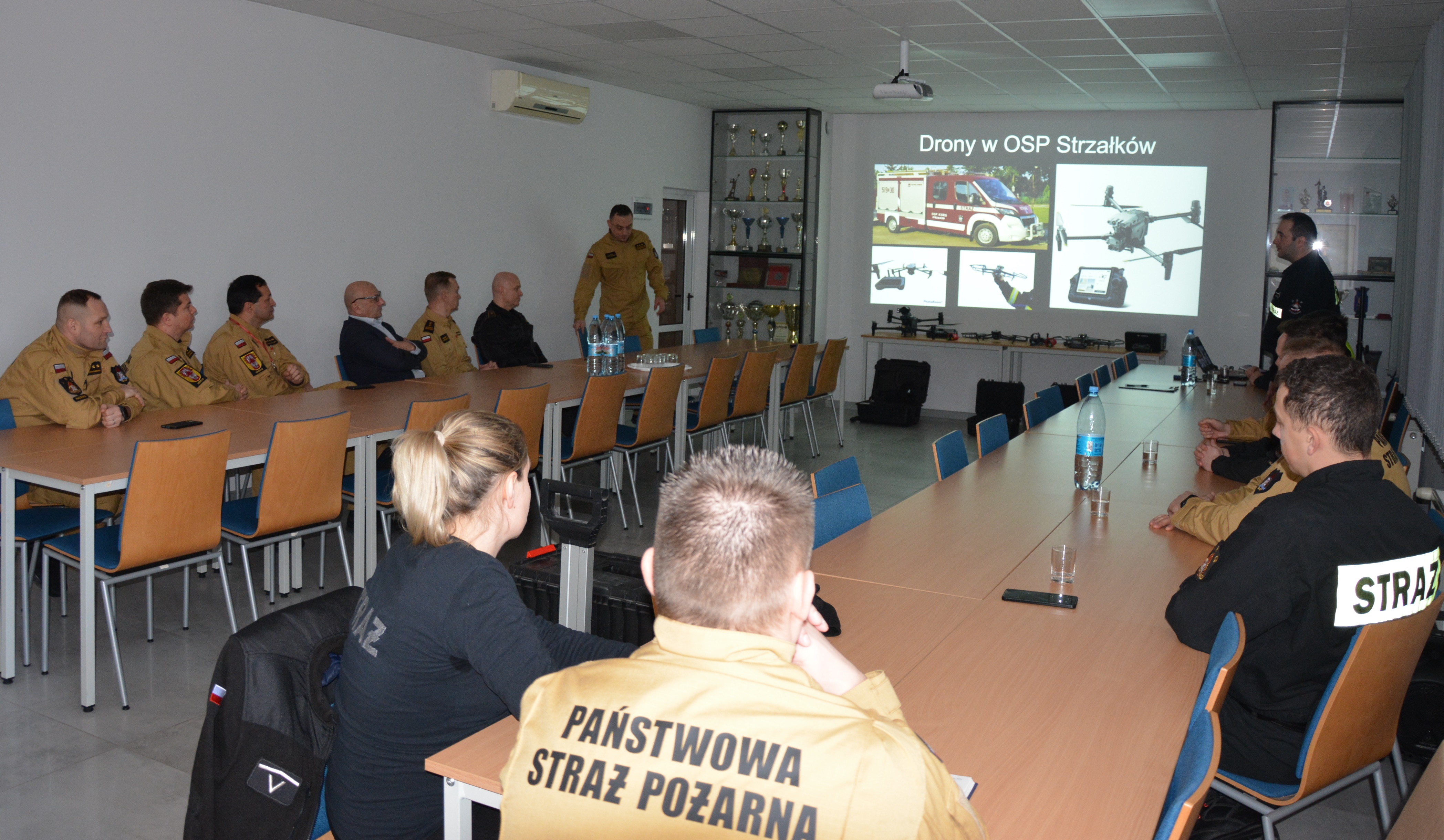 22 lutego 2023 roku w siedzibie Komendy Powiatowej PSP w Radomsku, z inicjatywy Komendanta Powiatowego Państwowej Straży Pożarnej w Radomsku, odbyło się spotkanie poświęcone możliwościom wykorzystania dronów z kamerami termowizyjnymi podczas działań ratowniczych prowadzonych przez straż pożarną. W trakcie spotkania jednostka OSP Strzałków, która jest wiodącą jednostką na terenie powiatu radomszczańskiego, prezentowała możliwości będących w ich posiadaniu dronów.