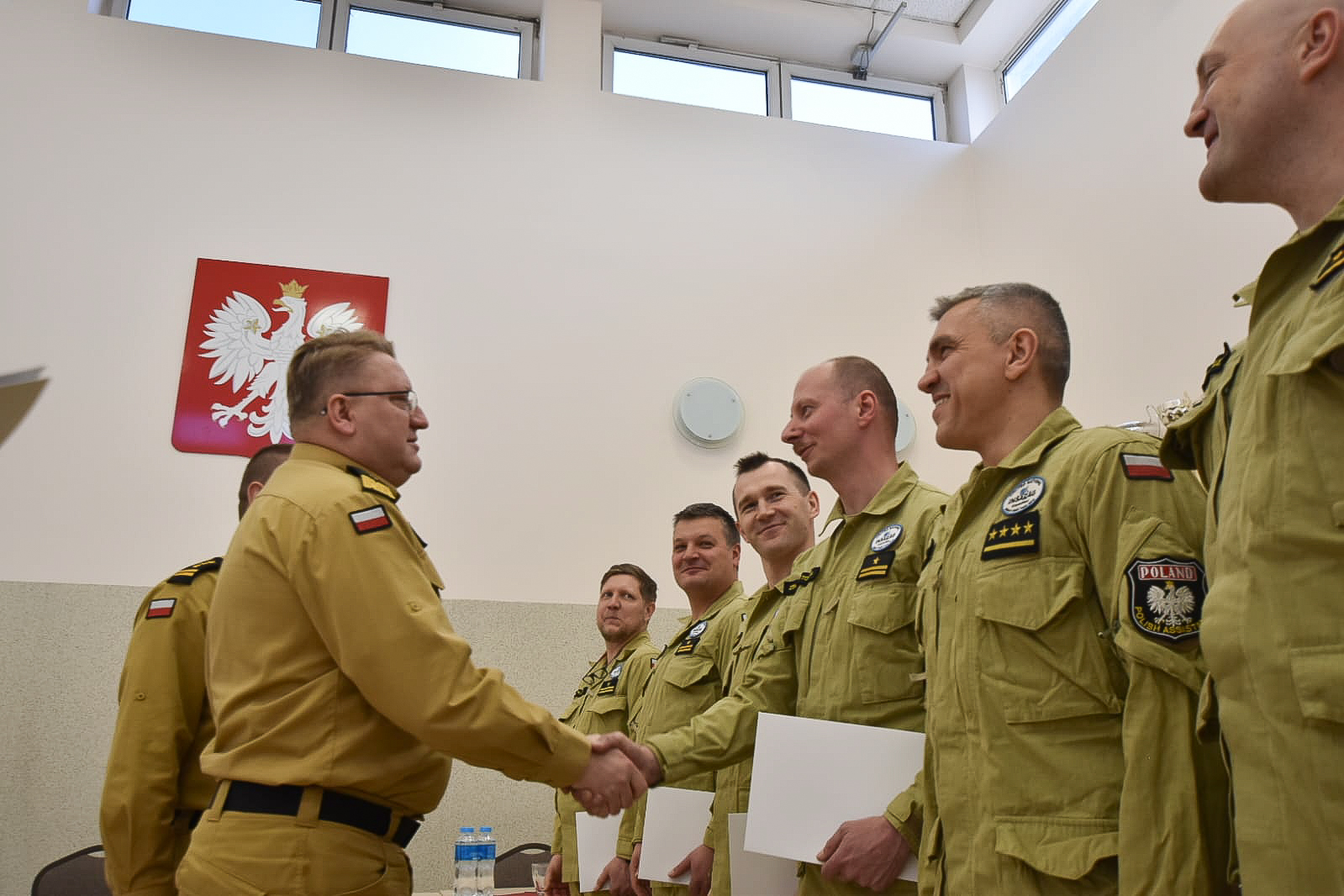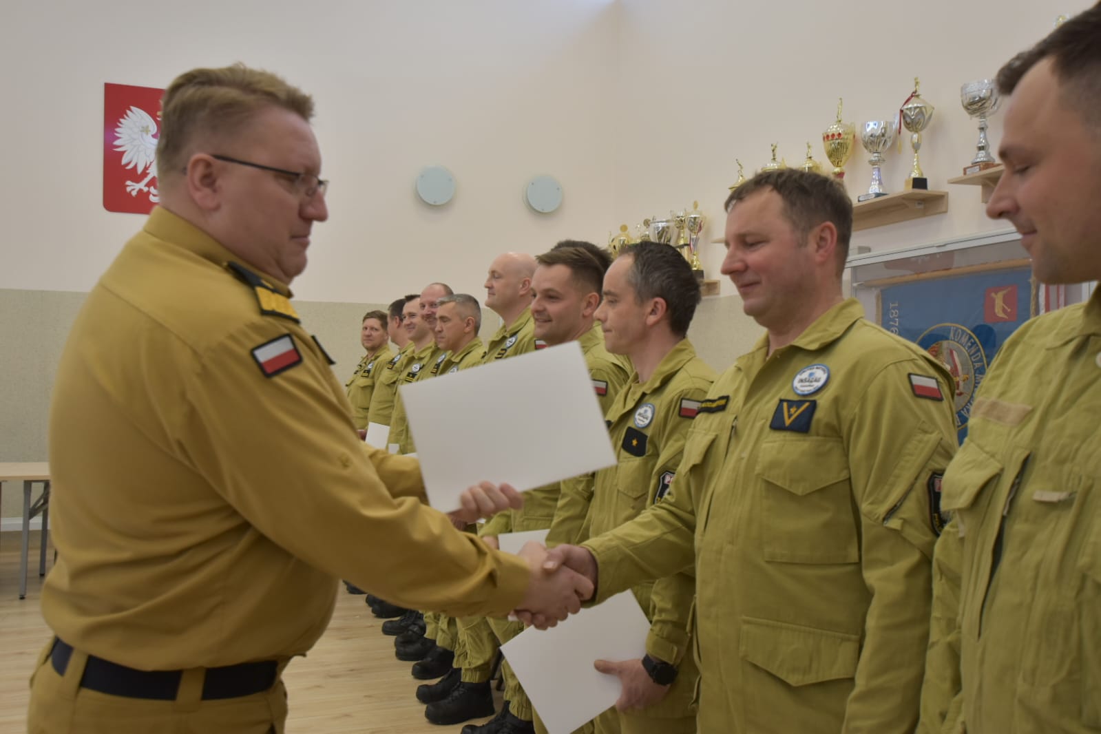 W trakcie spotkania Komendant wręczył strażakom nagrody przyznane przez Ministra Spraw Wewnętrznych i Administracji Pana Mariusza Kamińskiego za realizowanie zadań w szczególnie trudnych warunkach w związku z trzęsieniem ziemi, które nawiedziło Turcję w dniu 6 lutego 2023 r. oraz podziękował za profesjonalną i pełną poświęcenia akcję poszukiwawczo - ratowniczą.