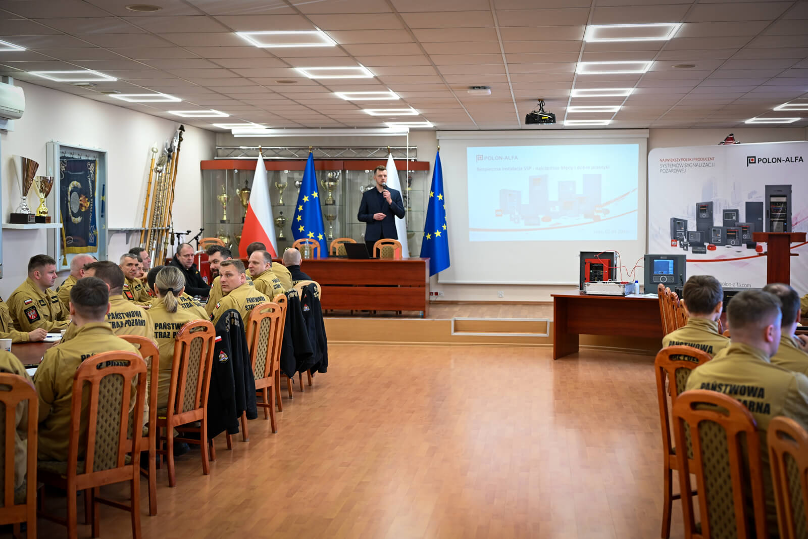 Uczestnicy zapoznali się z najczęściej popełnianymi błędami przy projektowaniu i montażu SSP oraz dobrymi praktykami wpływającymi na skuteczność działania systemów. W drugiej części przedstawiono możliwości panelu POSP 6000, który wspiera strażaków poprzez szybki dostęp do informacji o zdarzeniu i obiekcie.