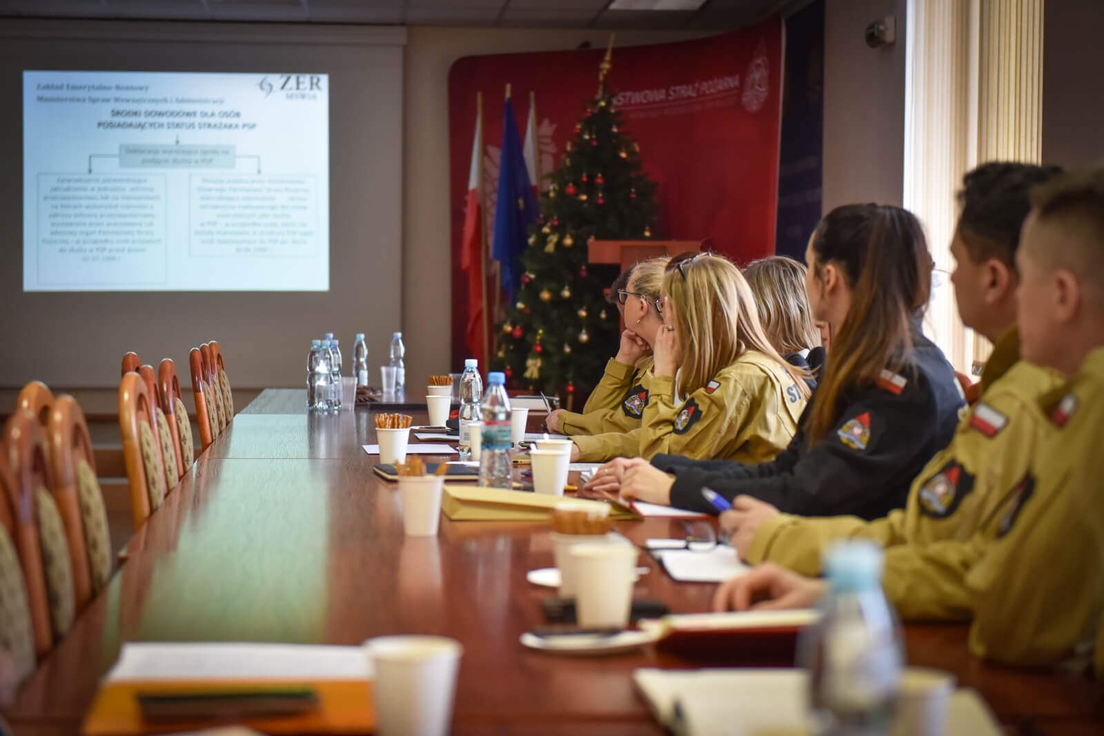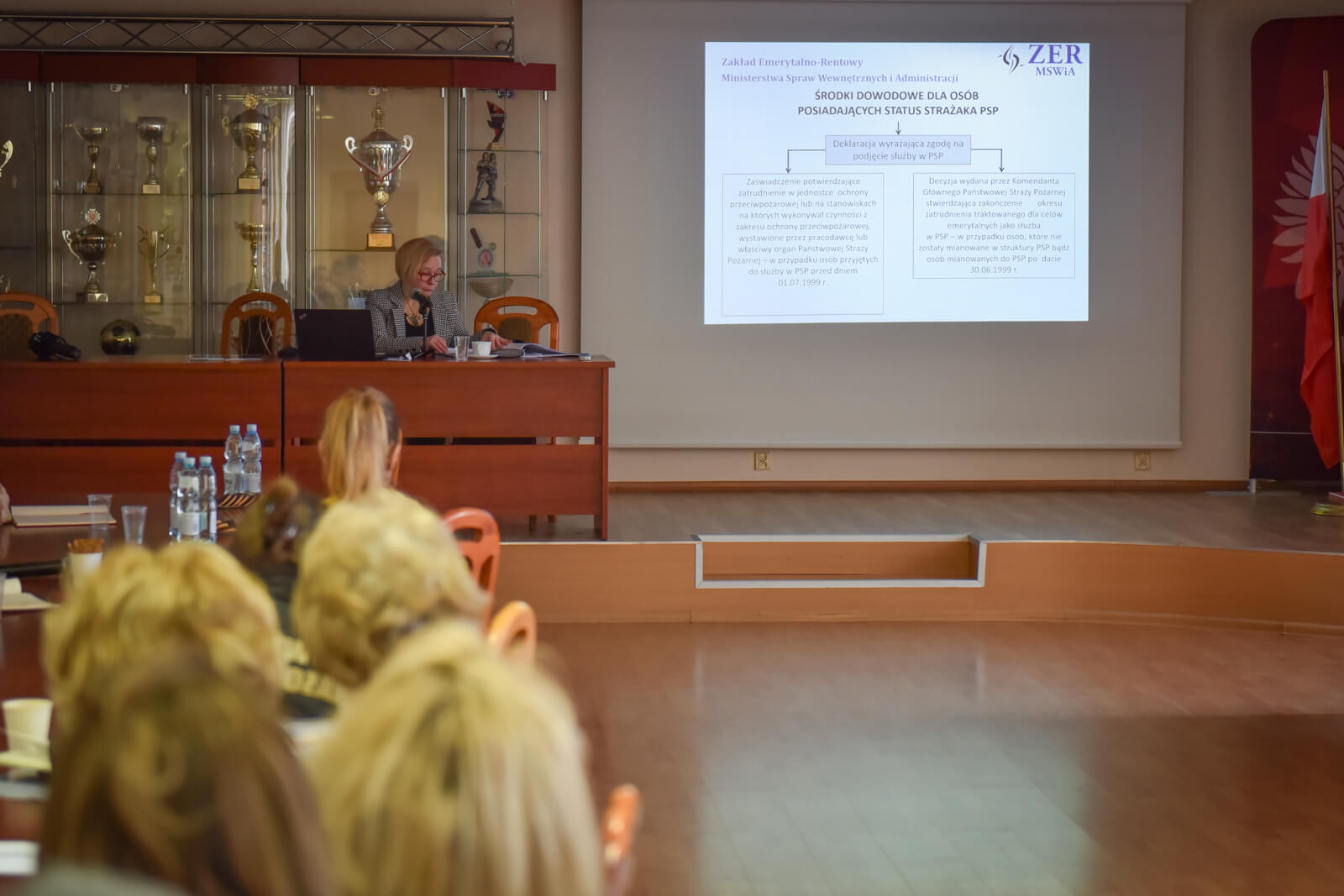 Tematem wykładów było ustalania prawa do świadczeń z zakresu zaopatrzenia emerytalno-rentowego funkcjonariuszom PSP oraz kompletowania dokumentacji przekazywanej wraz z wnioskami do Zakładu Emerytalno-Rentowego MSWiA.