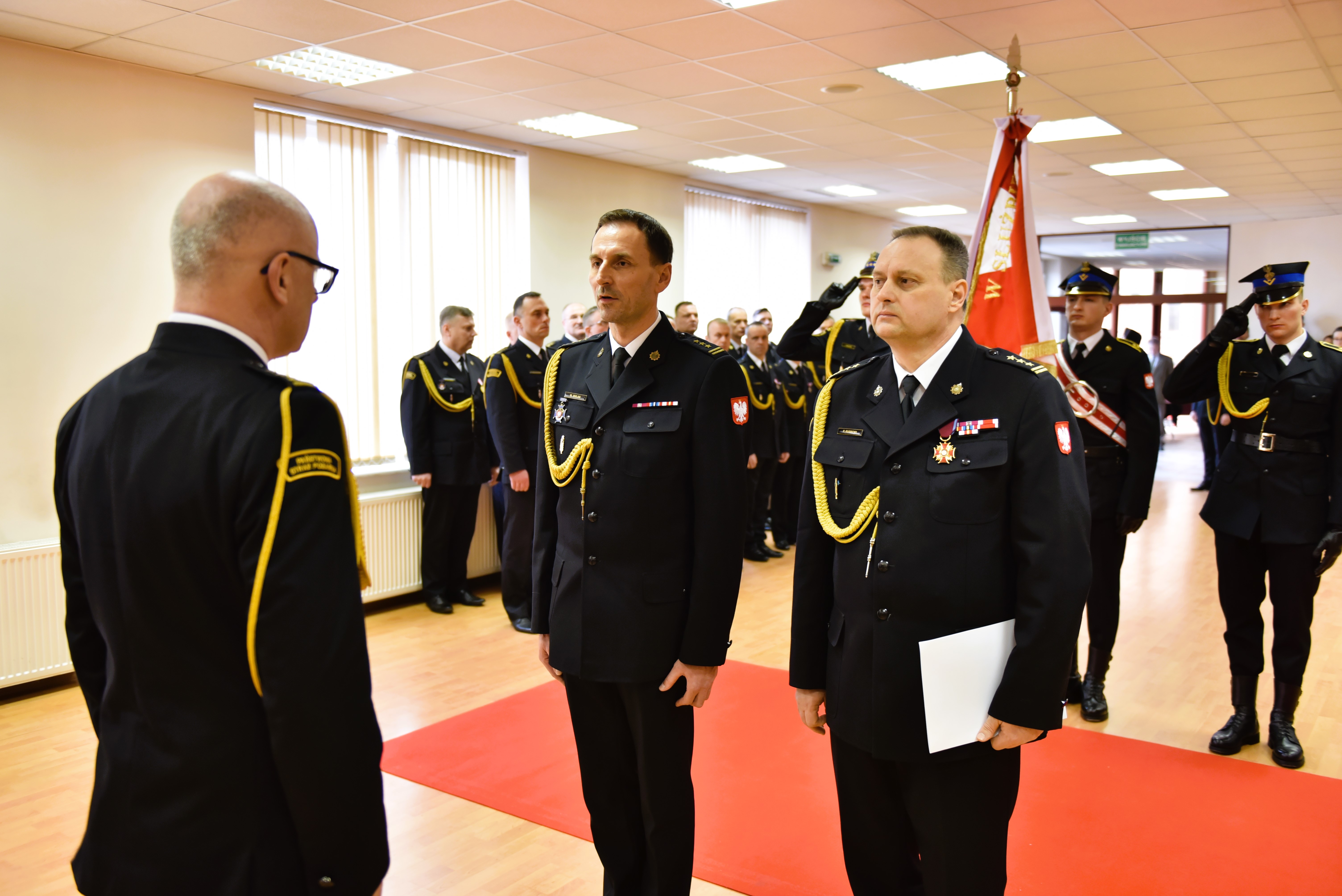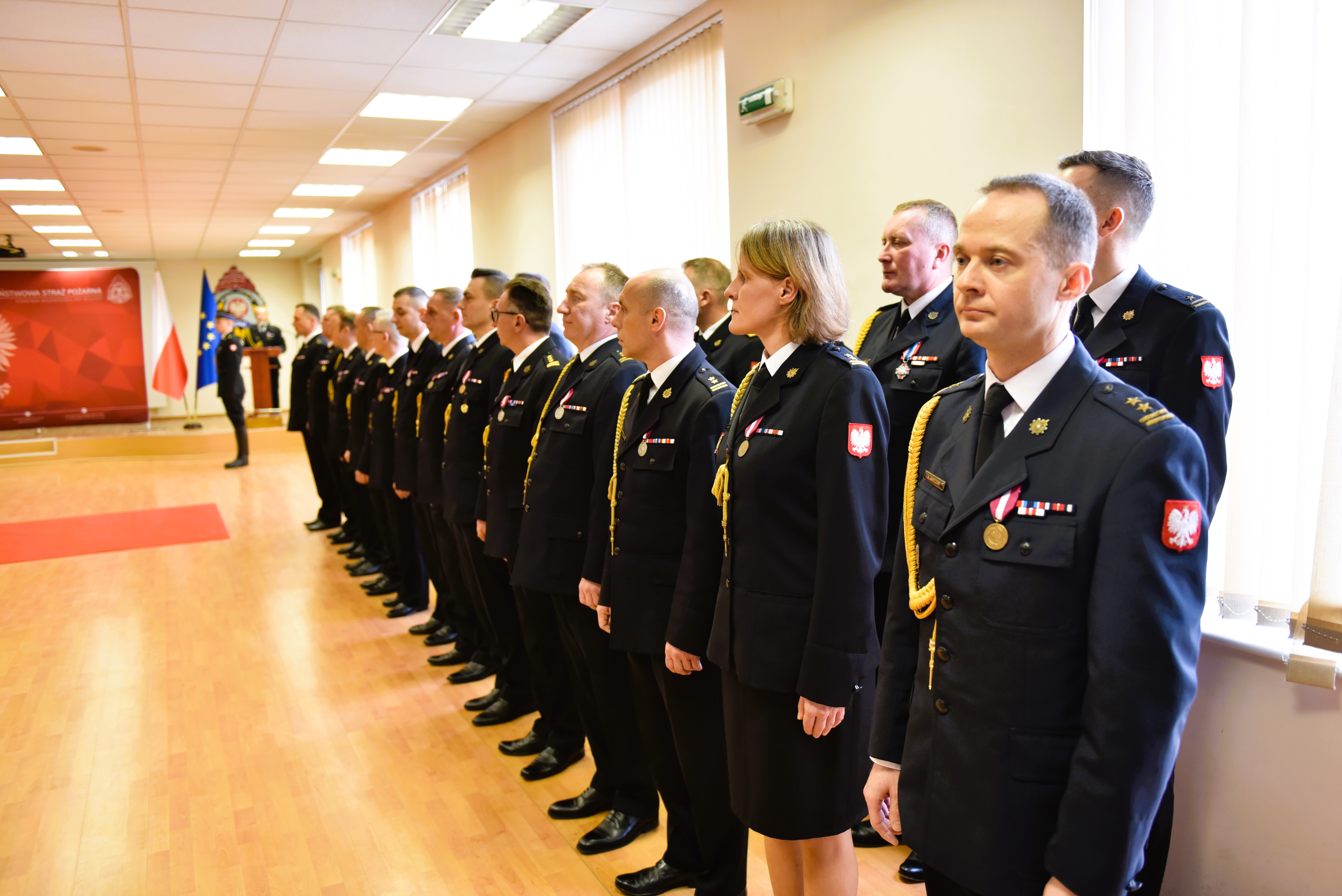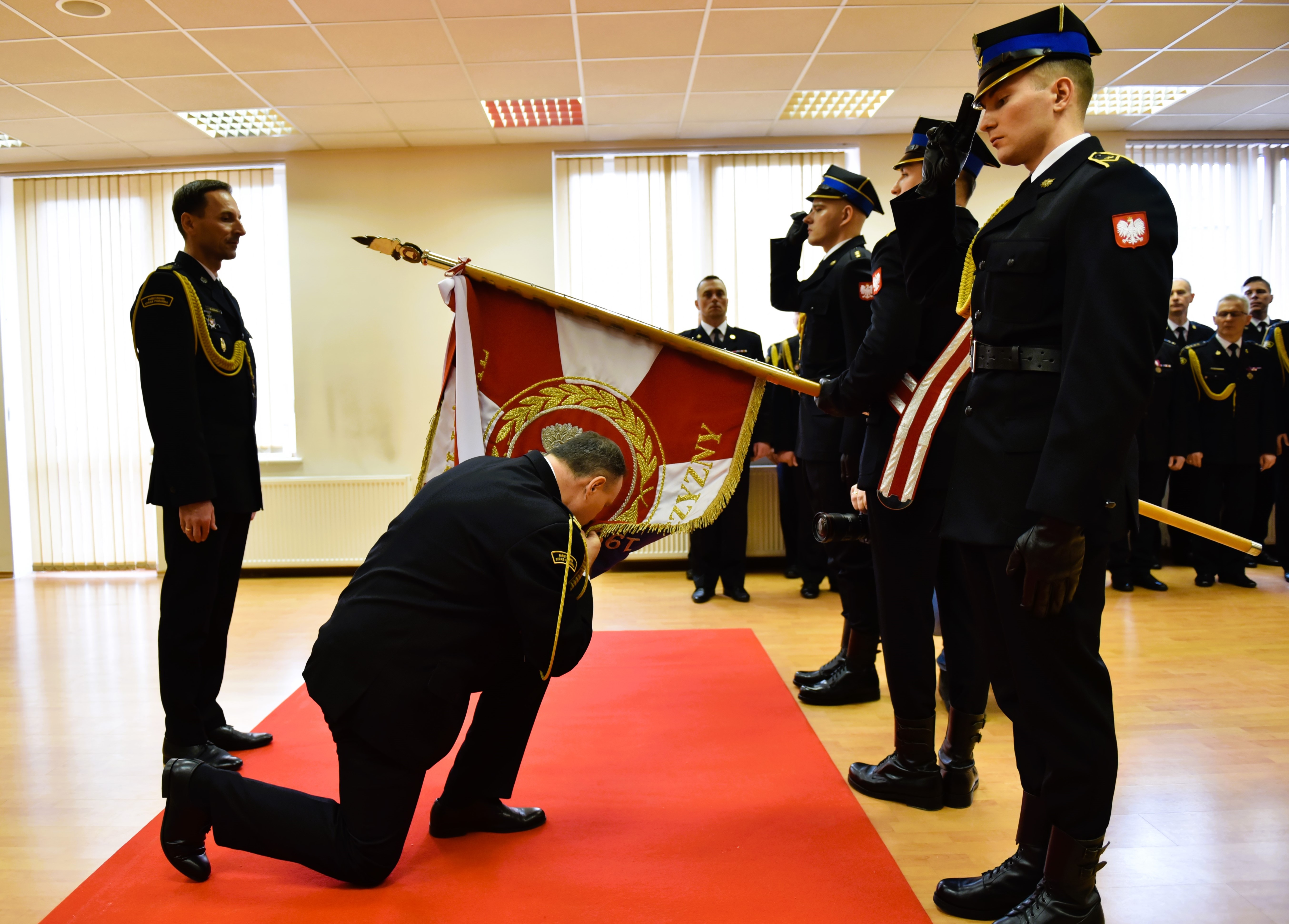 Uroczystość rozpoczęła się od złożenia meldunku st. bryg. Pawłowi Frysztakowi zastępcy komendanta głównego Państwowej Straży Pożarnej, po którym wprowadzono poczet sztandarowy Komendy oraz odśpiewano hymn państwowy.
