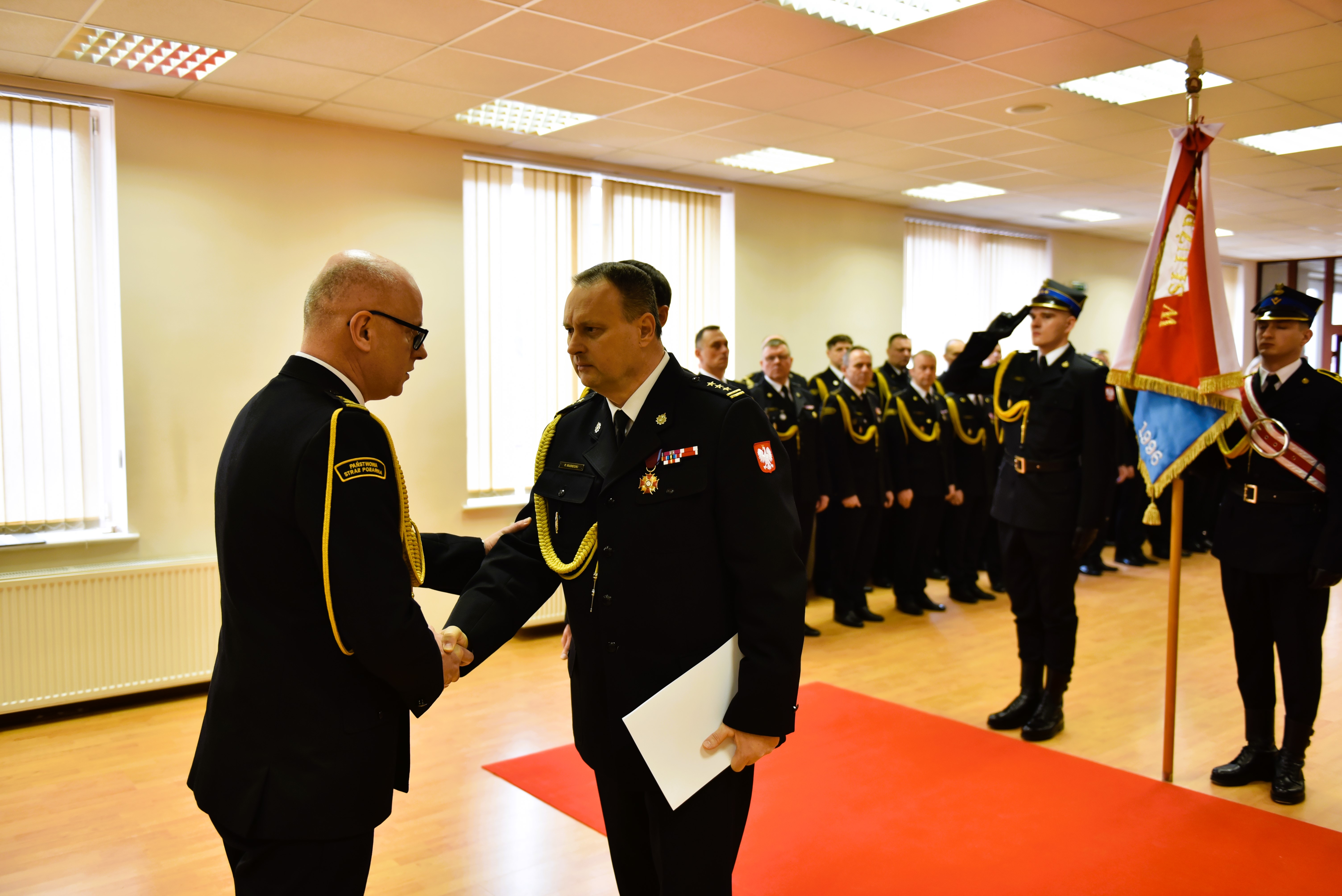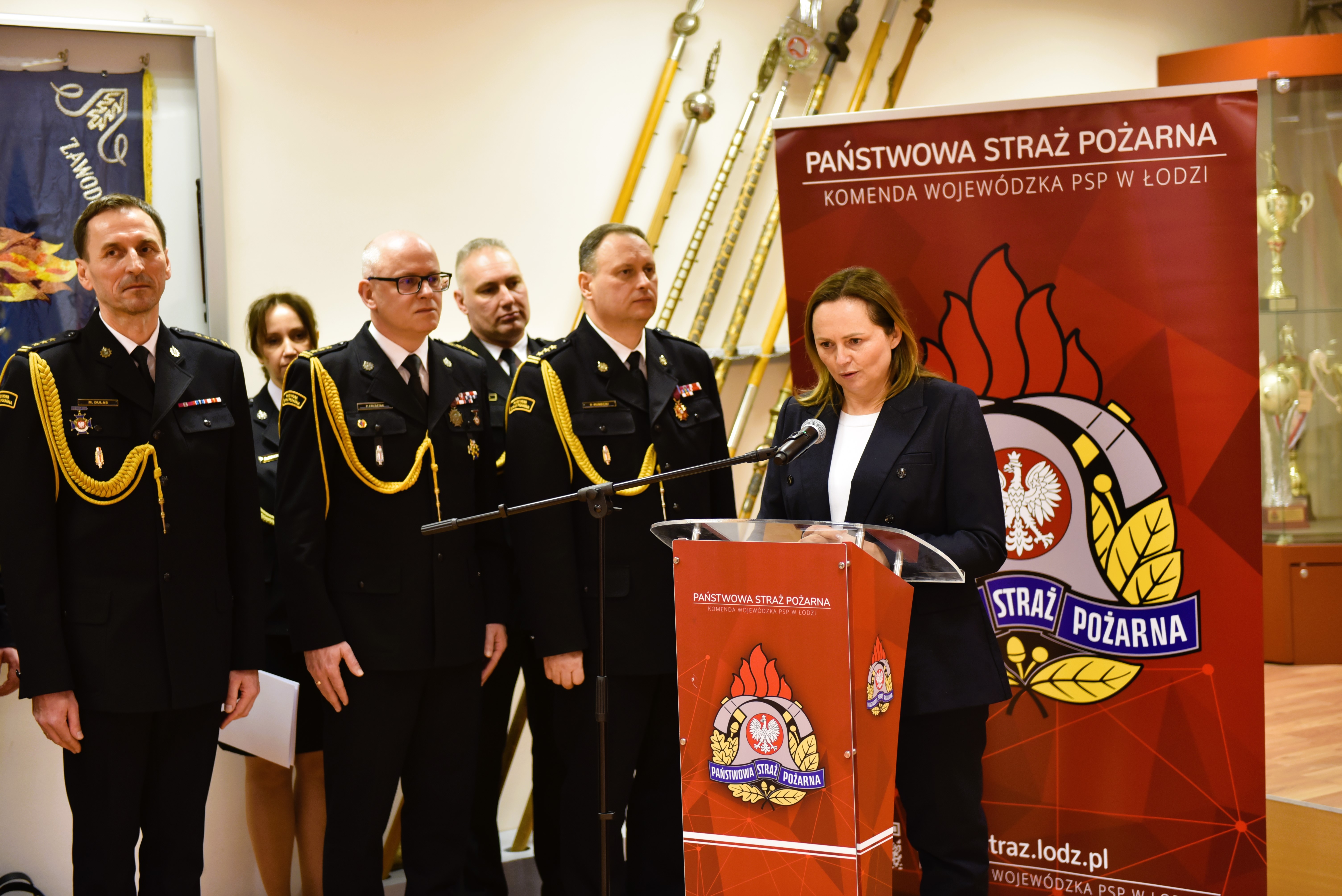 Następnie odczytano decyzje w sprawie odwołania st. bryg. Piotra Rudeckiego z funkcji łódzkiego komendanta wojewódzkiego PSP w Łodzi oraz powierzenia pełnienia obowiązków łódzkiego komendanta wojewódzkiego PSP w Łodzi st. bryg. Marcinowi Dulasowi.