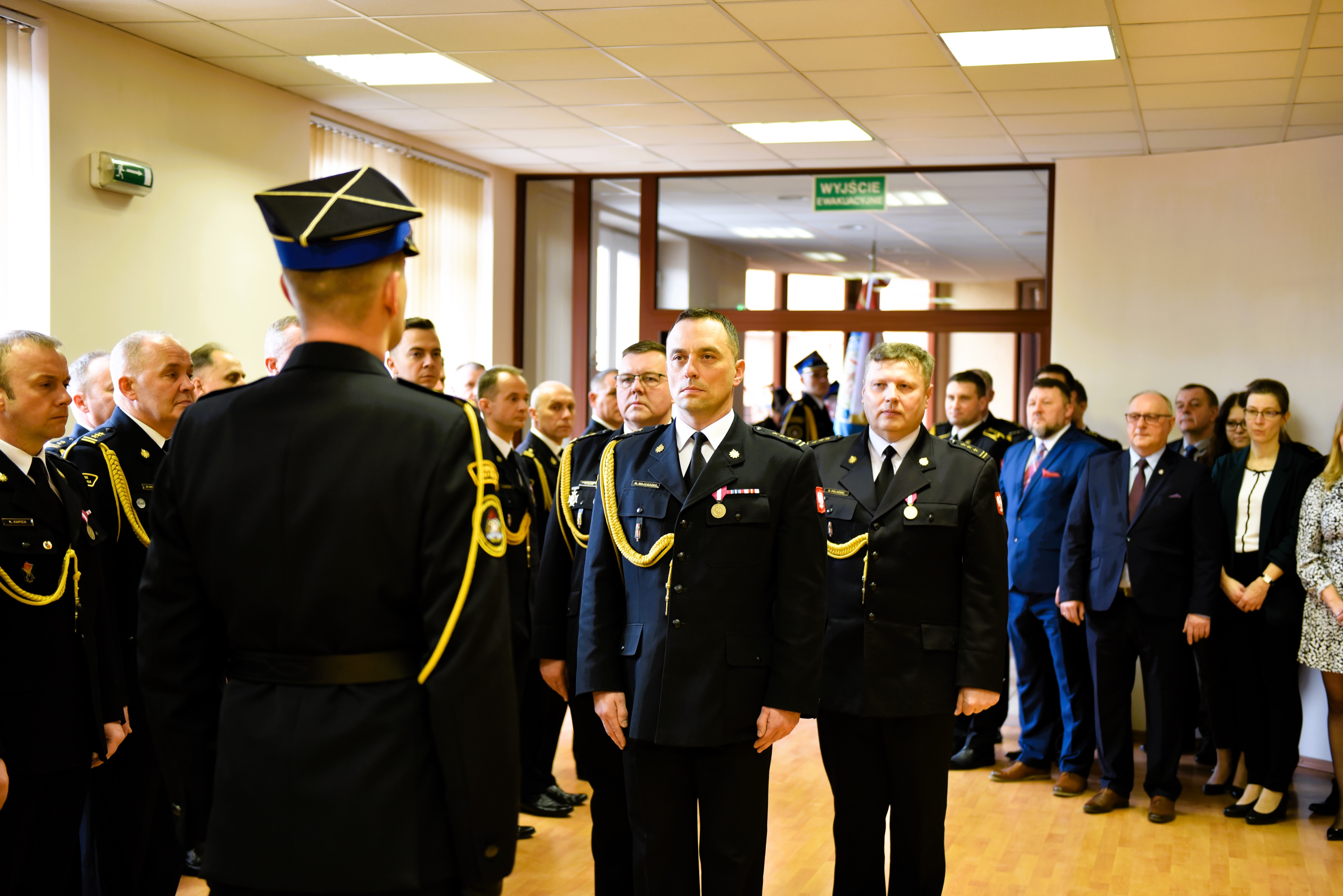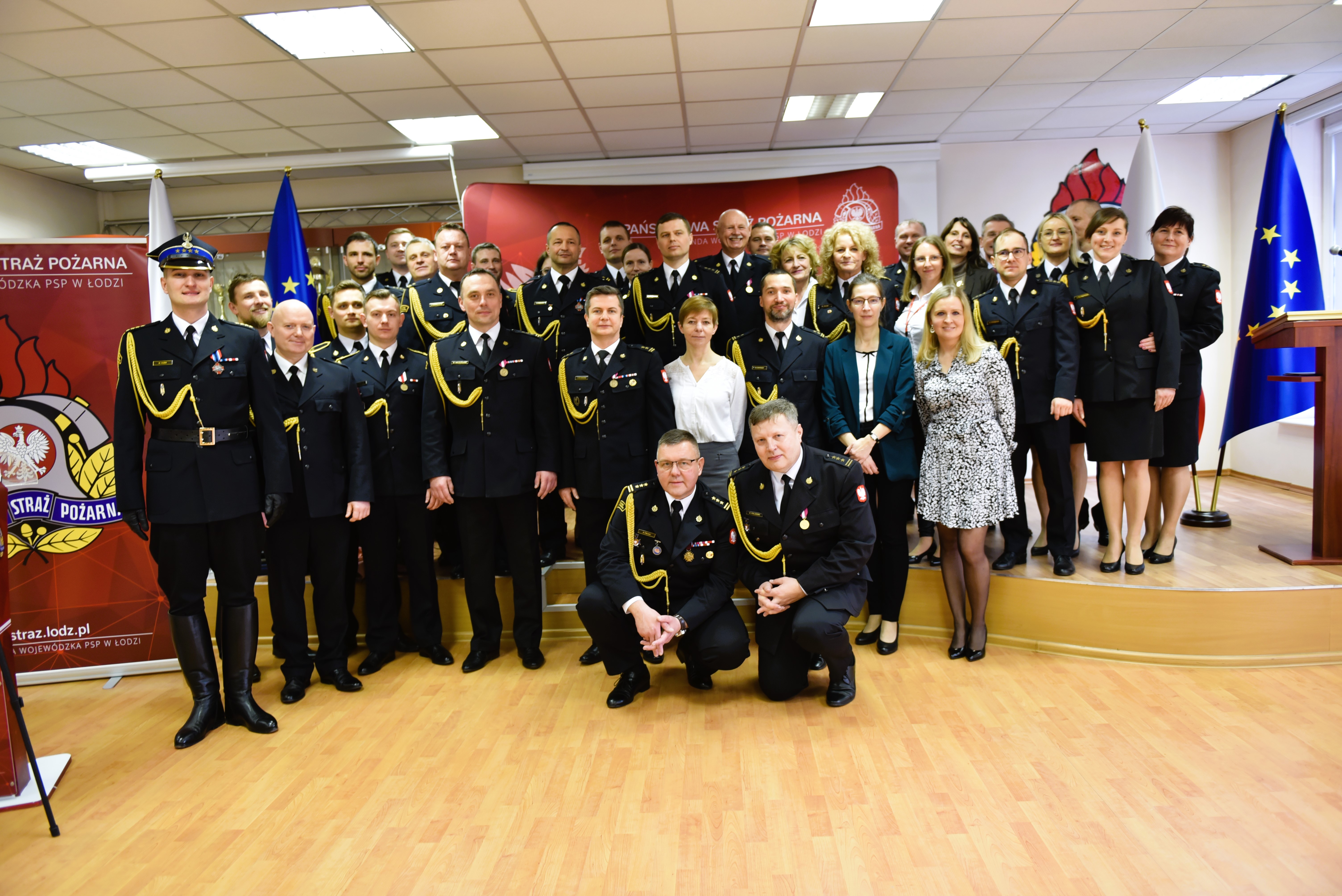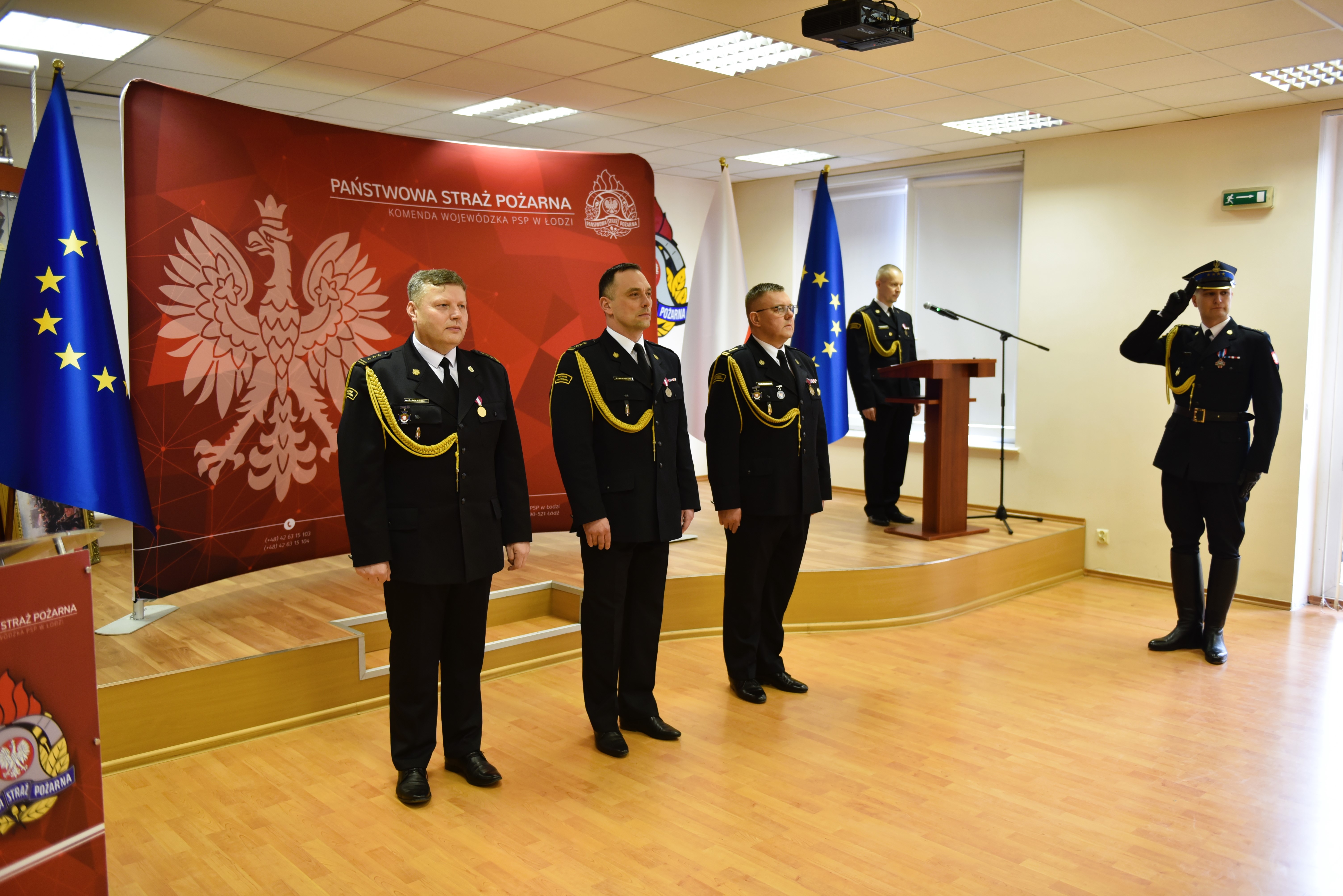 Uroczystość rozpoczęła się od złożenia meldunku st. bryg. Mariuszowi Wojcieszko zastępcy łódzkiego komendanta wojewódzkiego PSP w Łodzi, po którym wprowadzono poczet sztandarowy Komendy Wojewódzkiej Państwowej Straży Pożarnej w Łodzi oraz odśpiewano hymn państwowy.