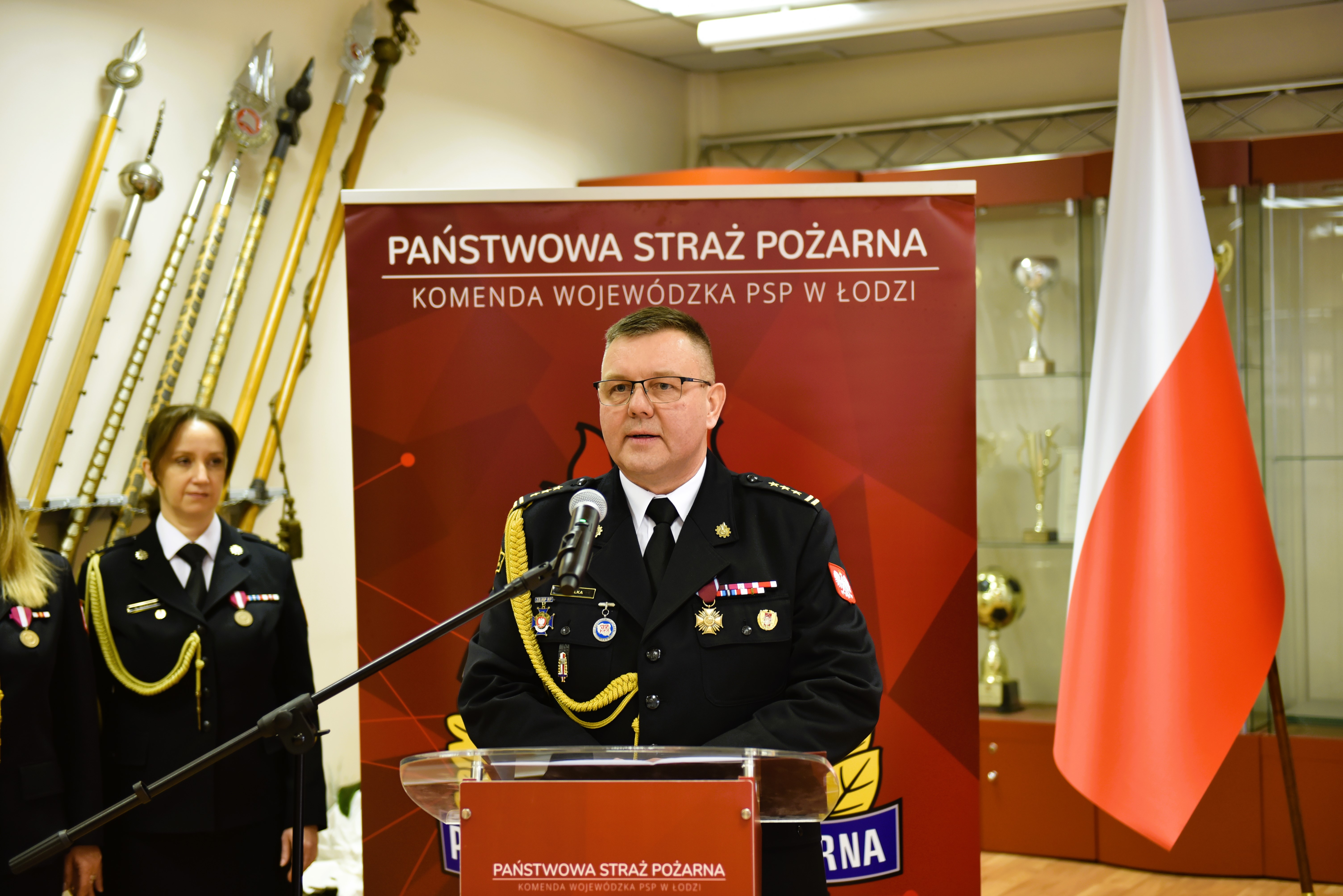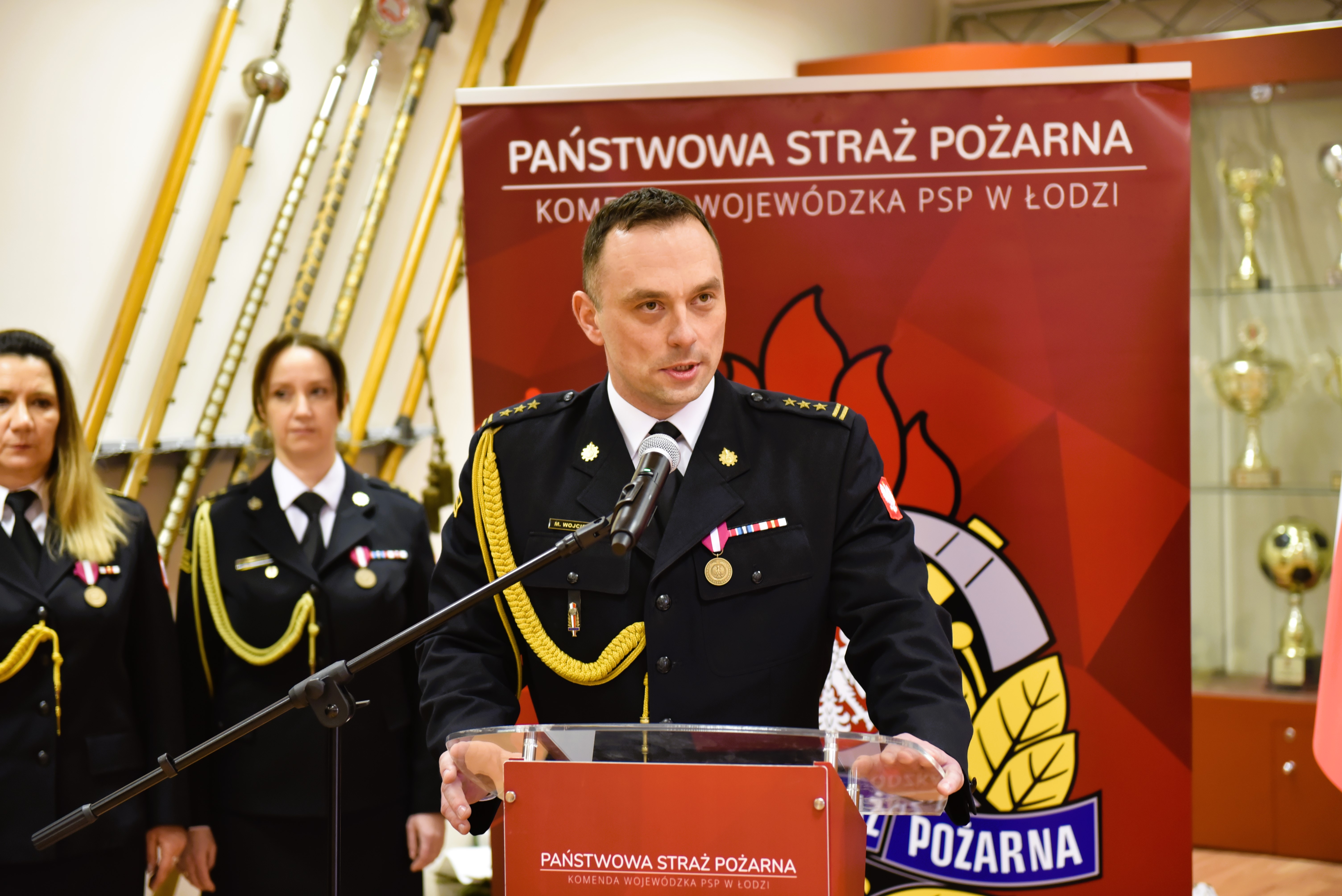 Następnie naczelnik Wydziału Kadr bryg. Agnieszka Wasylik odczytała akty odwołania ze stanowisk Zastępcy Łódzkiego Komendanta Wojewódzkiego PSP w Łodzi. W dalszej części uroczystości odczytano rysy historyczne komendantów.