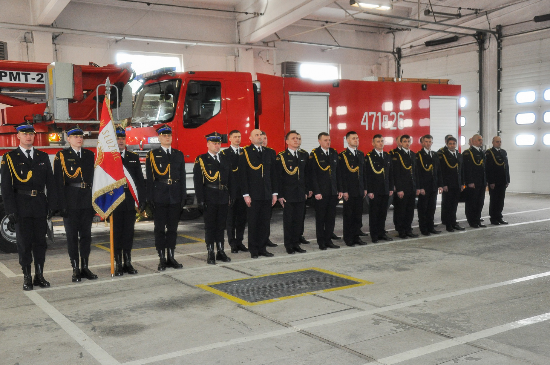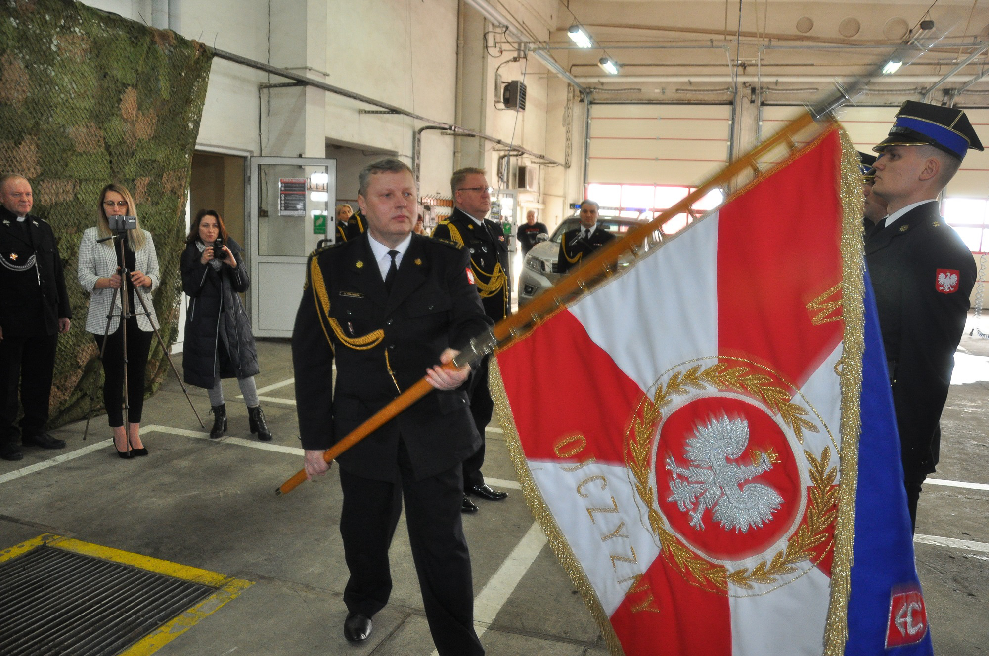 Zgodnie z ceremoniałem przyjęcie obowiązków nastąpiło w asyście sztandaru Komendy Powiatowej PSP w Opocznie.