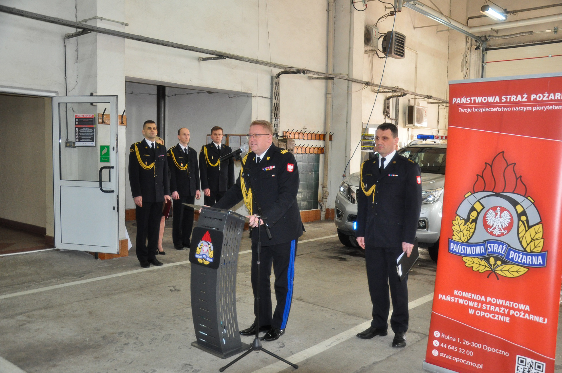 Uroczysta zbiórka z okazji przyjęcia obowiązków Komendanta Powiatowego PSP w Opocznie odbyła się w dniu 10 marca 2023 roku w Komendzie Powiatowej Państwowej Straży Pożarnej w Opocznie w obecności kierownictwa Komendy Wojewódzkiej PSP w Łodzi, zaproszonych gości, funkcjonariuszy i pracowników komendy.