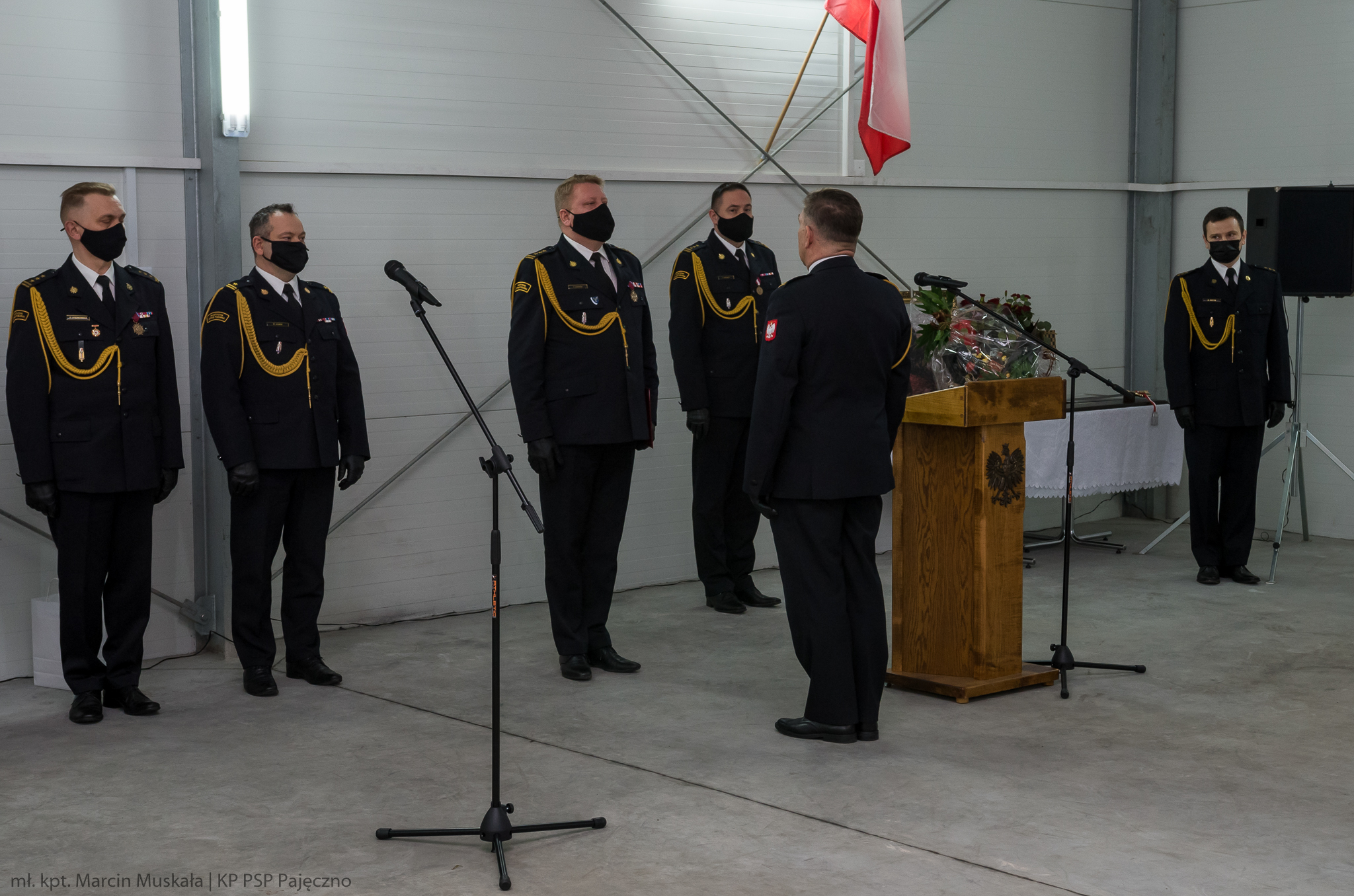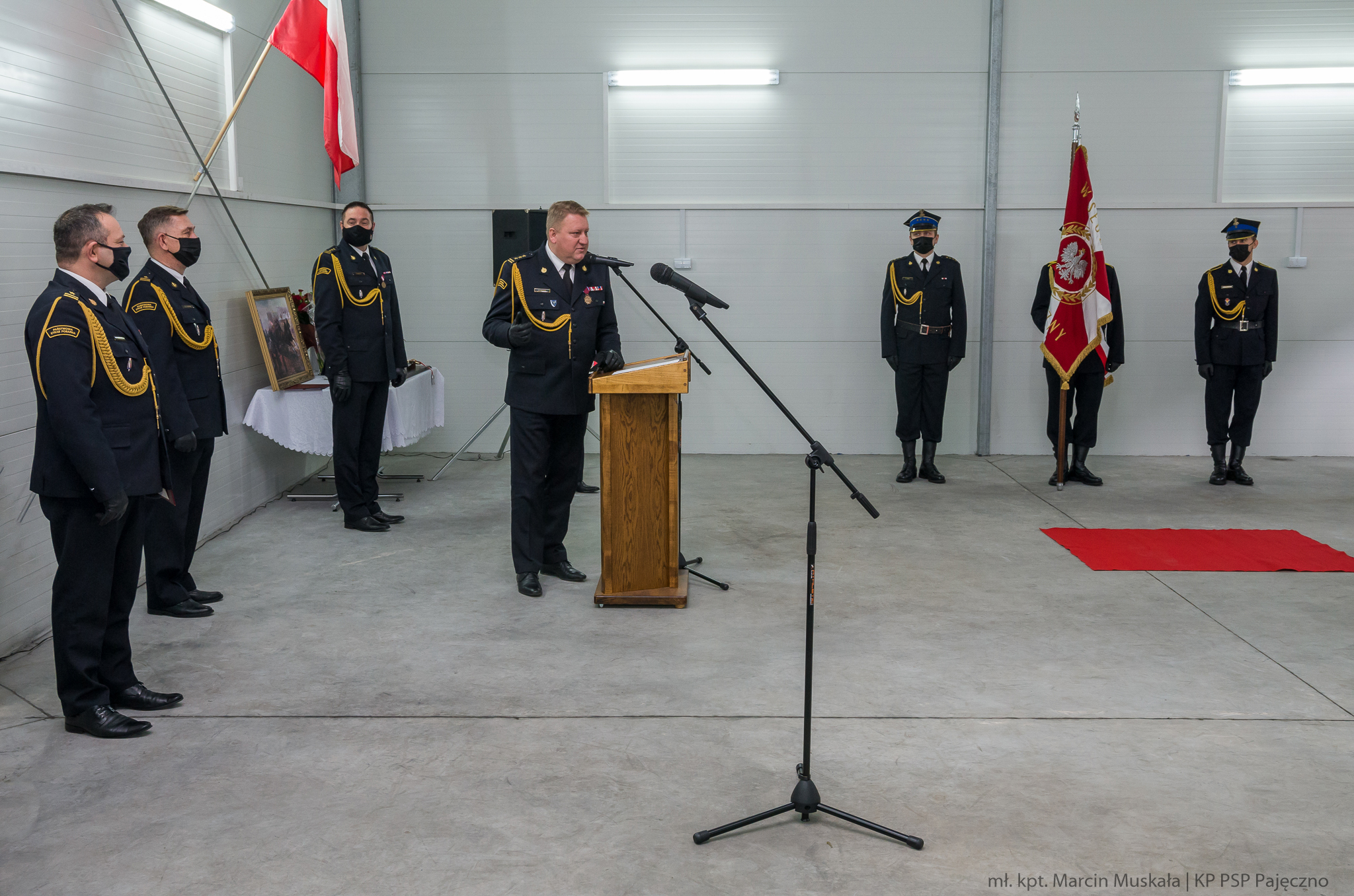 W uroczystości brali udział również: st. bryg. Zbigniew Łyszkowicz zastępca Łódzkiego Komendanta Wojewódzkiego PSP w Łodzi, st. bryg. Sebastian Kościsty Naczelnik Wydziału Kadr Komendy Wojewódzkiej PSP w Łodzi, przedstawiciele władz samorządowych i zaprzyjaźnionych służb oraz pracownicy i funkcjonariusze Komendy Powiatowej PSP w Pajęcznie.