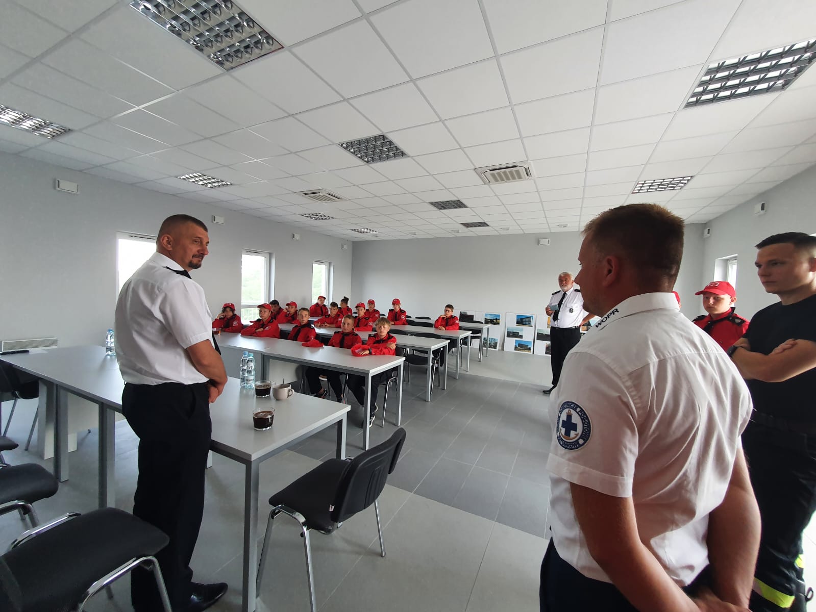 st. bryg. Paweł Malinowski na spotkaniu z dziećmi oraz kadrą obozu przekazał członkom MDP okolicznościowe dyplomy oraz strażackie upominki nawiązujące do historii Państwowej Straży Pożarnej. Jest to pierwszy taki obóz zorganizowany dla członków młodzieżowych drużyn pożarniczych OSP z terenu powiatu kutnowskiego.