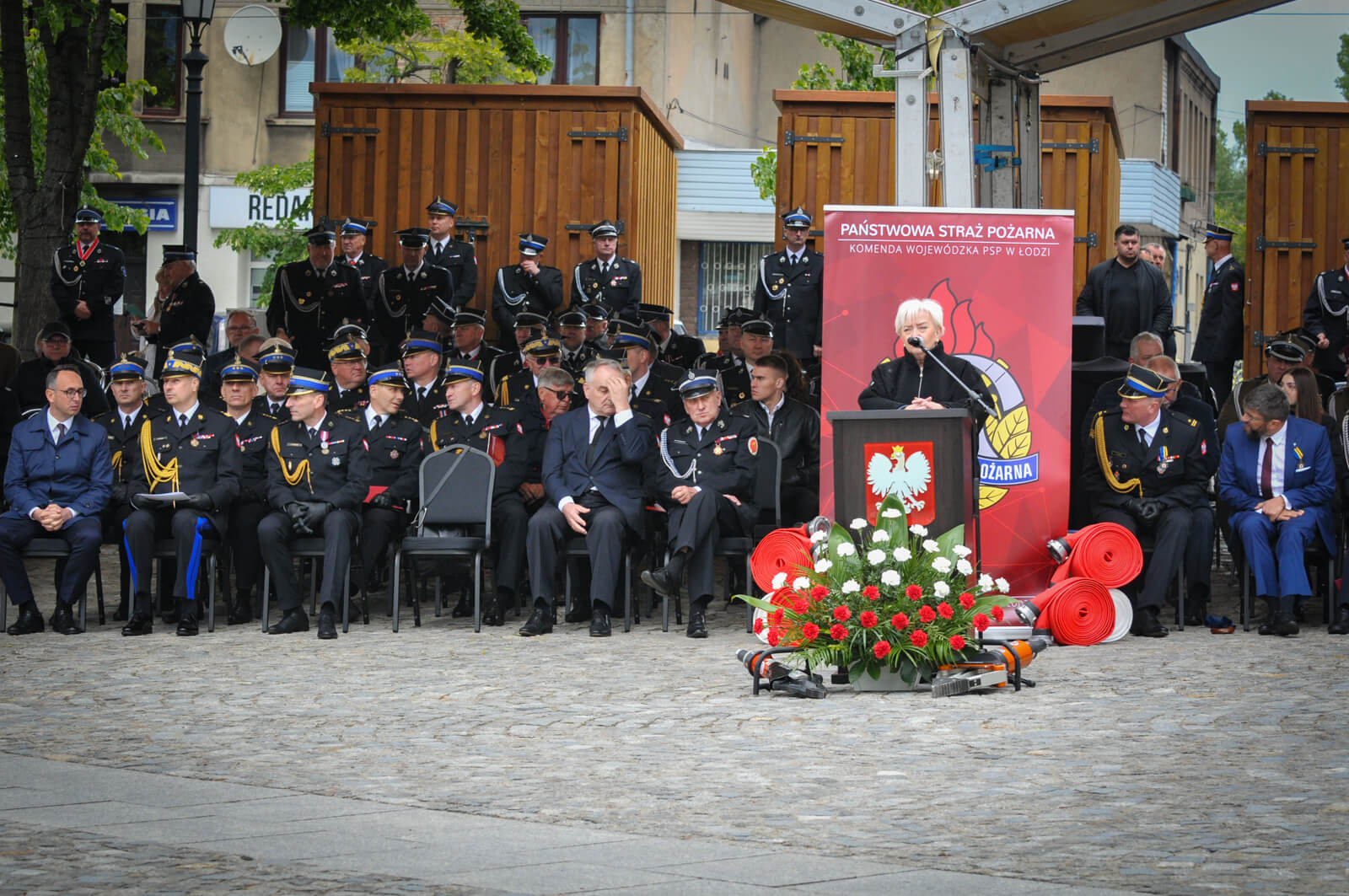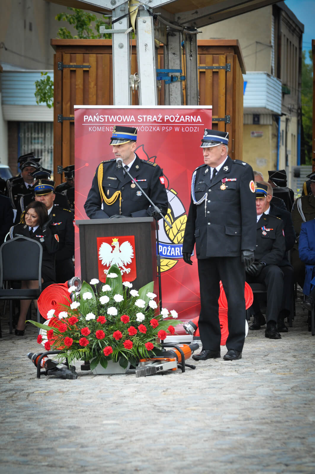 Następnie głos zabrali organizatorzy uroczystości st. bryg. Marcin Dulas Łódzki Komendant Wojewódzki PSP w Łodzi oraz dh Tadeusz Karcz Prezes Zarządu Oddziału Wojewódzkiego Związku Ochotniczych Straży Pożarnych Rzeczpospolitej Polskiej, który przywitali uczestników tego wydarzenia.