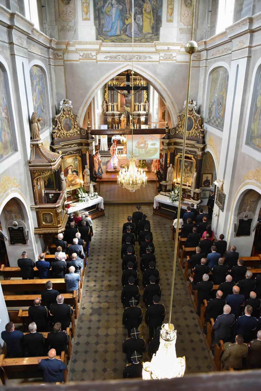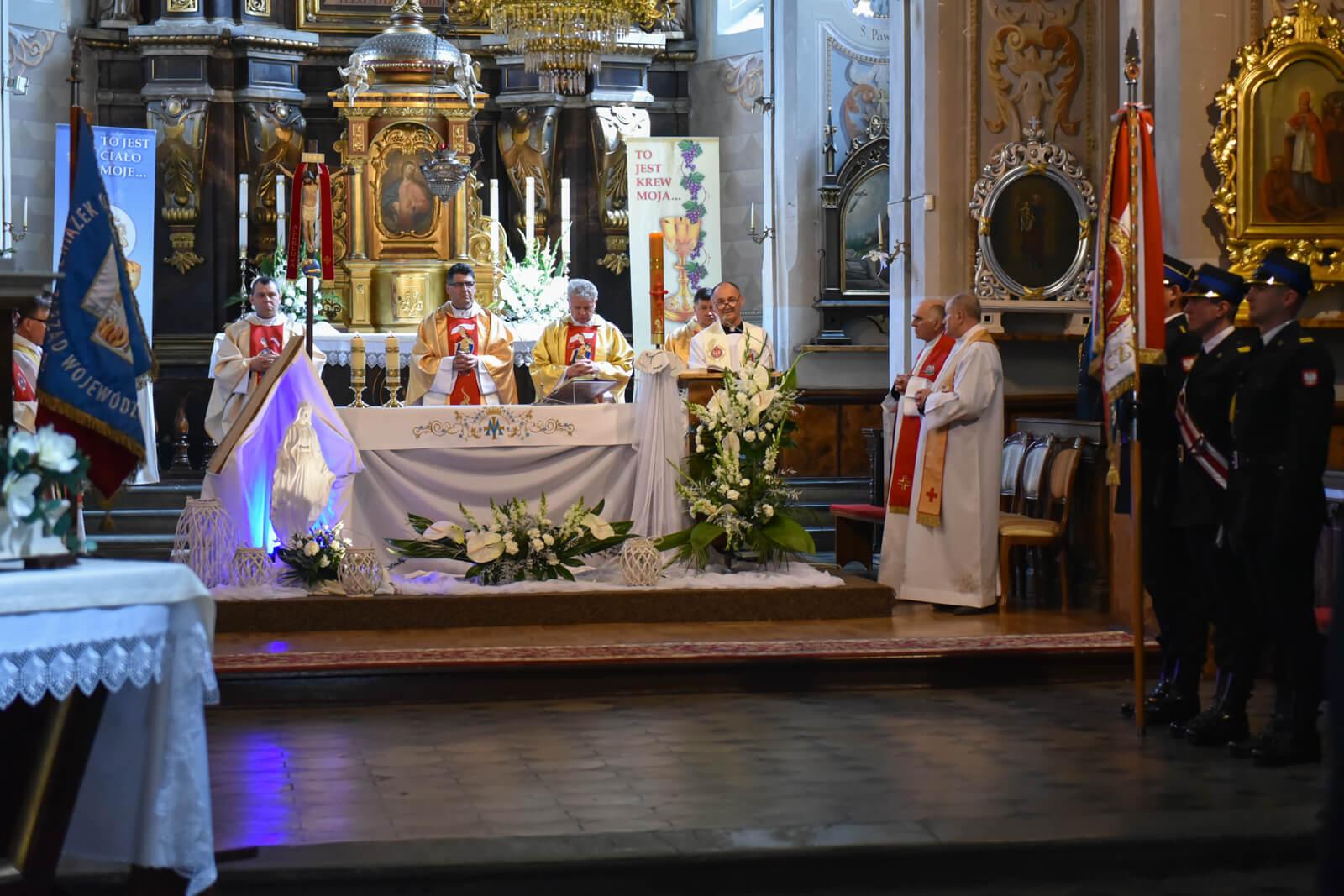 Uroczystość rozpoczęła się mszą świętą w intencji strażaków w kościele pod wezwaniem Świętego Andrzeja apostoła w Łęczycy. Mszę świętą koncelebrowali ksiądz Adam Stańdo kapelan strażaków województwa łódzkiego oraz kapelani powiatowi i miejscy. Po zakończeniu liturgii uczestnicy mszy, kompanie honorowe oraz poczty sztandarowe przemaszerowały ulicami Łęczycy na plac Kościuszki, na którym miały miejsce główne uroczystości.