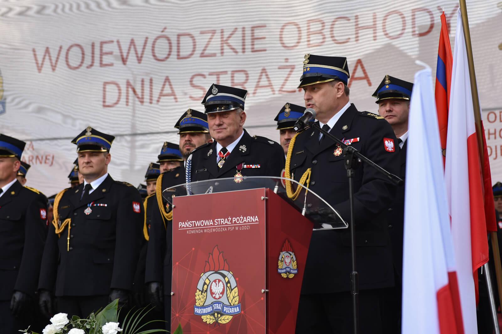 Uroczysty apel rozpoczął się od złożenia meldunku st. bryg. Pawłowi Frysztakowi zastępcy komendanta głównego Państwowej Straży Pożarnej, który następnie dokonał przeglądu pododdziałów. Po podniesieniu na maszt flagi państwowej oraz odśpiewania hymnu państwowego uczestnicy uroczystości zostali powitani przez jego organizatorów st. bryg. Piotra Rudeckiego łódzkiego komendanta wojewódzkiego PSP w Łodzi oraz nadbryg. w st. spocz. dh Tadeusza Karcza Prezesa Zarządu Oddziału Wojewódzkiego ZOSP RP woj. łódzkiego.