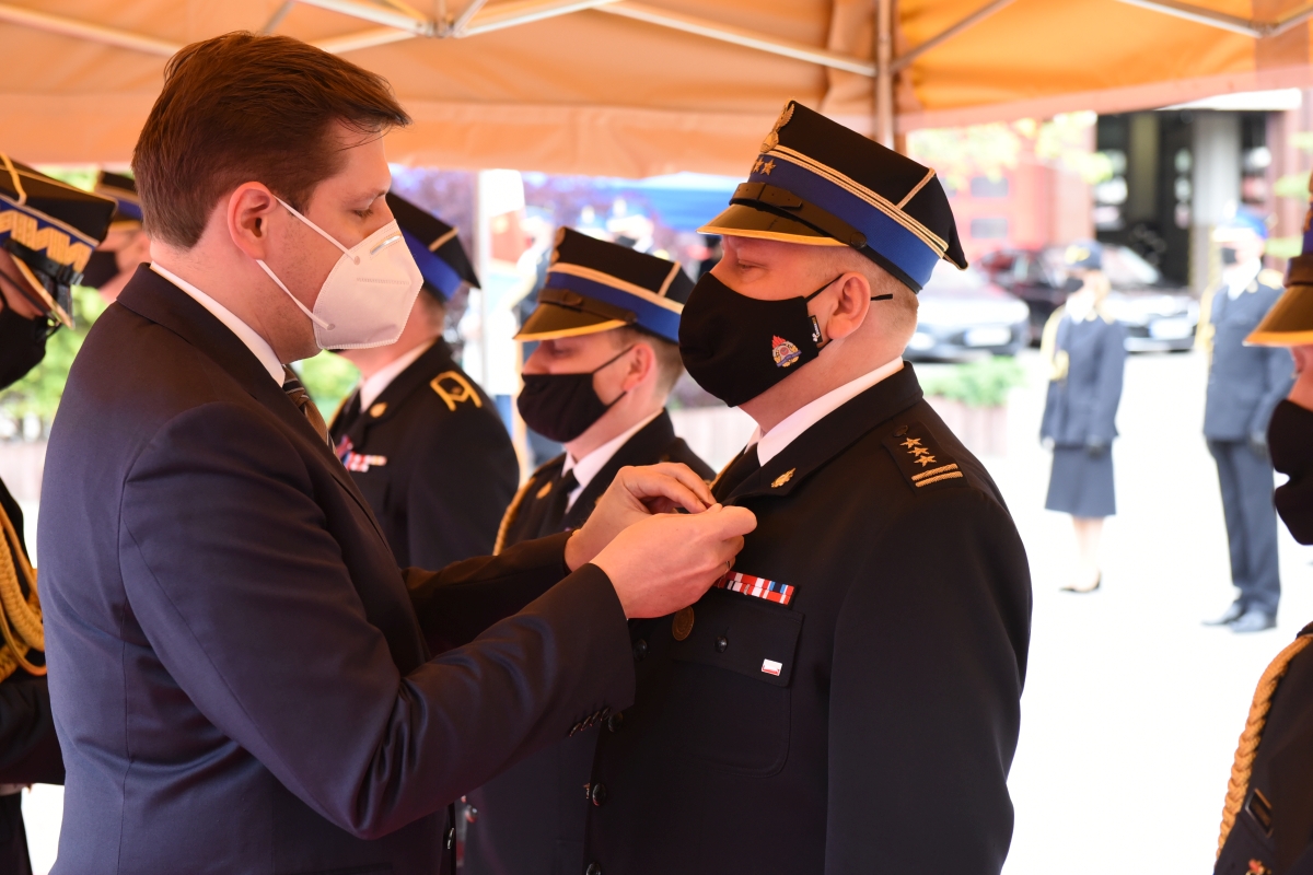 10 oficerów awansowano na wyższe stopnie służbowe, a nadbryg. Krzysztof Hejduk Zastępca Komendanta Głównego Państwowej Straży Pożarnej uroczyście nadał 17 funkcjonariuszom Państwowej Straży Pożarnej stopień młodszego kapitana.