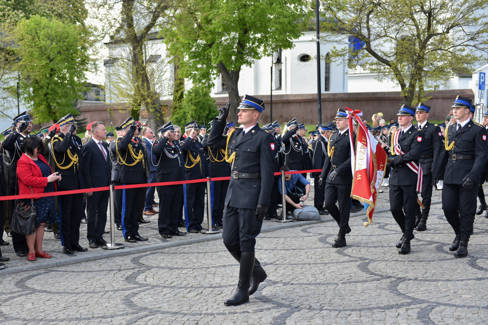 Po mszy nastąpiło przejście pododdziałów honorowych, pocztów sztandarowych oraz licznie przybył gości na plac im. Tadeusza Kościuszki, na którym odbywały się główne uroczystości. Uroczysty apel rozpoczął się od złożenia meldunku zastępy komendanta głównego PSP nadbryg. Krzysztofowi Hejdukowi, który następnie dokonał przeglądu pododdziałów.