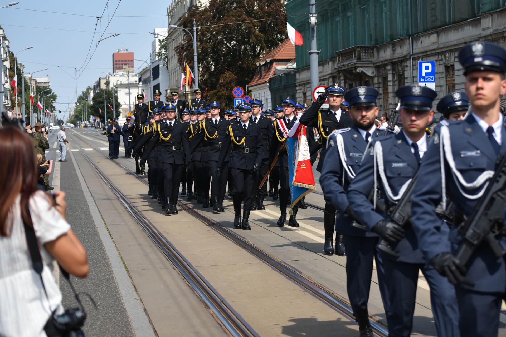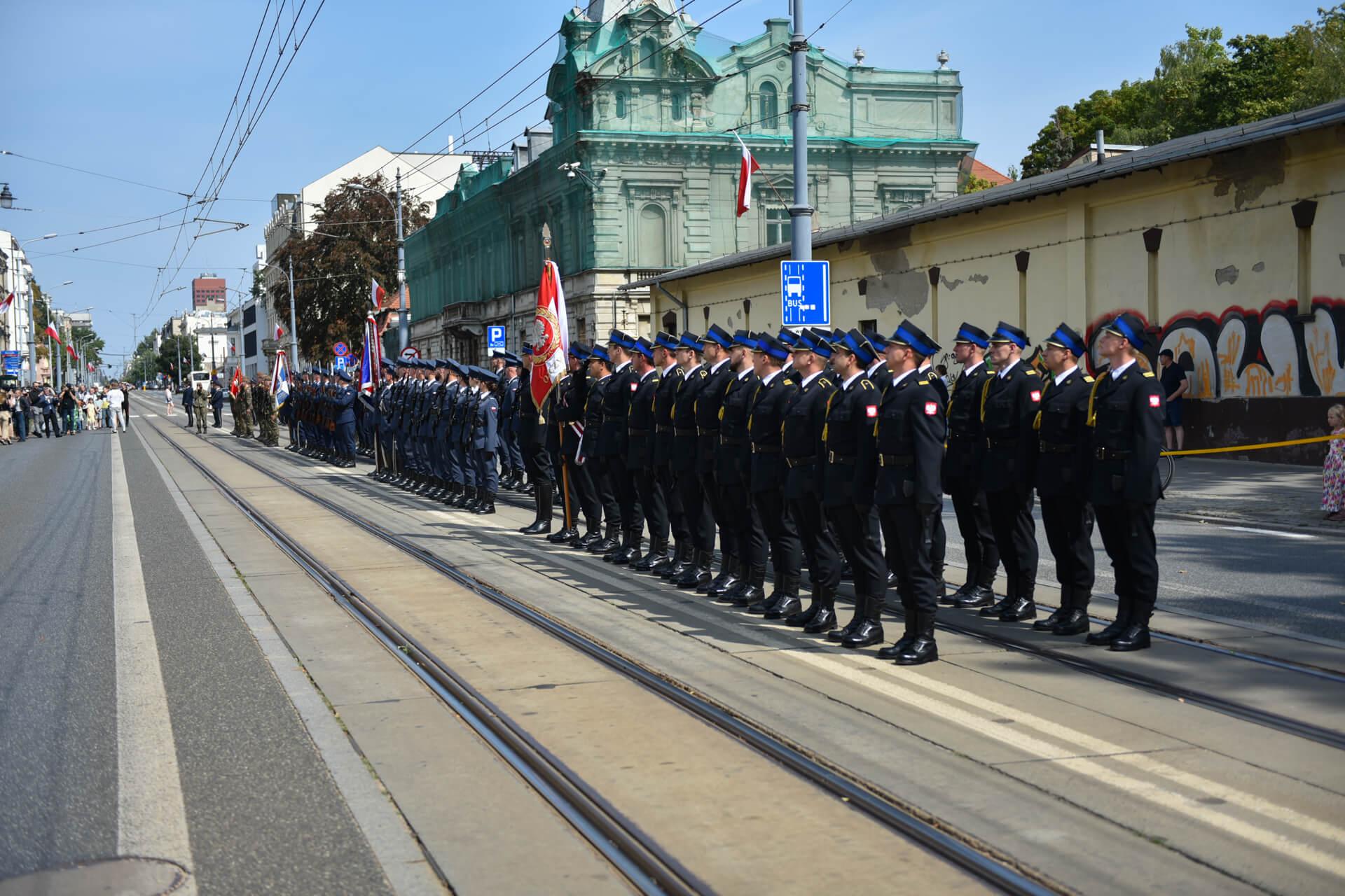 Uroczystości zakończyła defilada pododdziałów honorowych: 9 Łódzkiej Brygady Wojsk Obrony Terytorialnej, Policji, Służby Więziennej, Państwowej Straży Pożarnej oraz oddziału konnego Straży Miejskiej w Łodzi. Oprawę muzyczną zapewniła Zakładowa Orkiestra Dęta MPK Łódź.