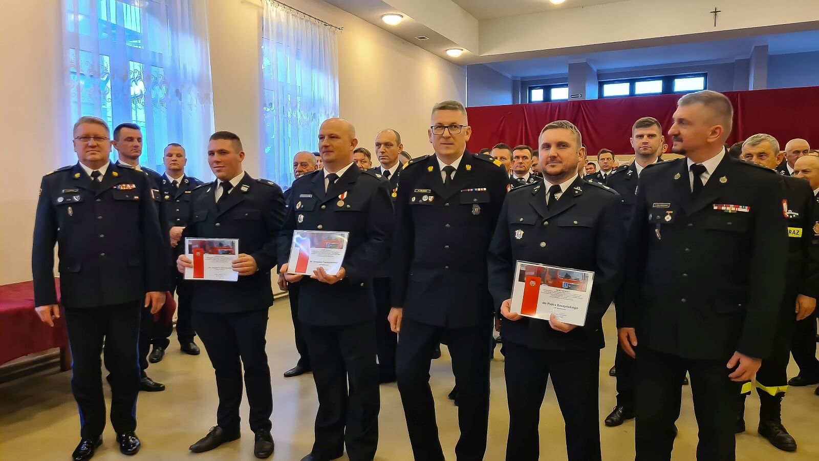 Ostatnim elementem spotkania było wręczenie gratulacji druhom strażakom OSP z racji ukończenia szkolenia przygotowującego do egzaminu oraz zdania egzaminu dopuszczającego do kierowania pojazdem samochodowym o dopuszczalnej masie całkowitej powyżej 3,5 t dla strażaków ratowników ochotniczych straży pożarnych.