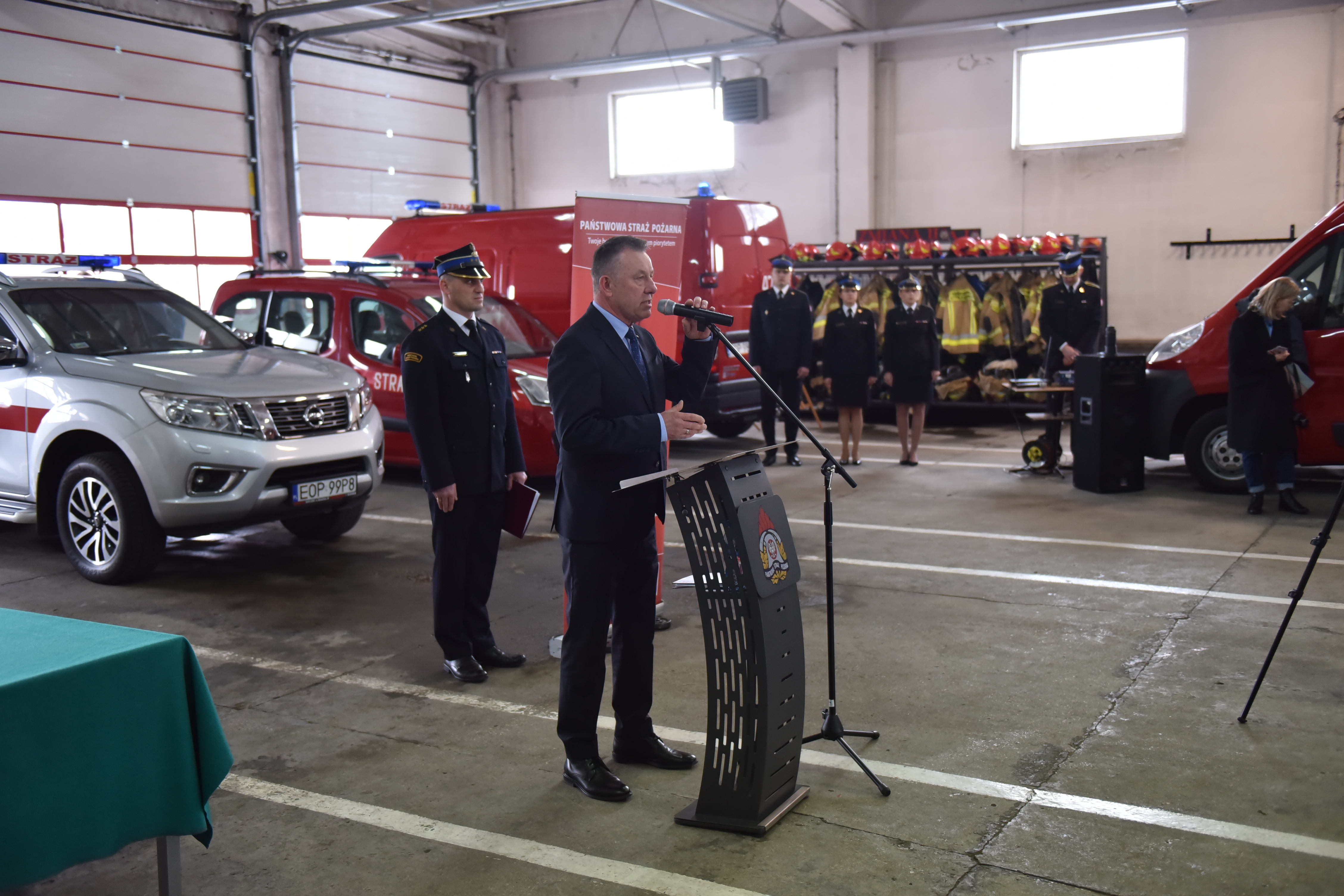 1 kwietnia na terenie Komendy Powiatowej Państwowej Straży Pożarnej w Opocznie odbyła się uroczystość wręczenia promes na zakup samochodów ratowniczo-gaśniczych dla Ochotniczych Straży Pożarnych z terenu powiatów: