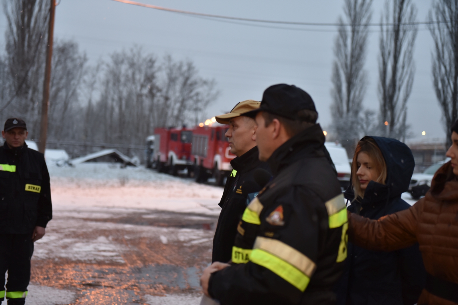 Wyjeżdżających strażaków pożegnali i życzyli bezpiecznej drogi st. bryg. Zbigniew Łyszkowicz i st. bryg. Sebastian Kościsty Zastępcy Łódzkiego Komendanta Wojewódzkiego PSP w Łodzi.