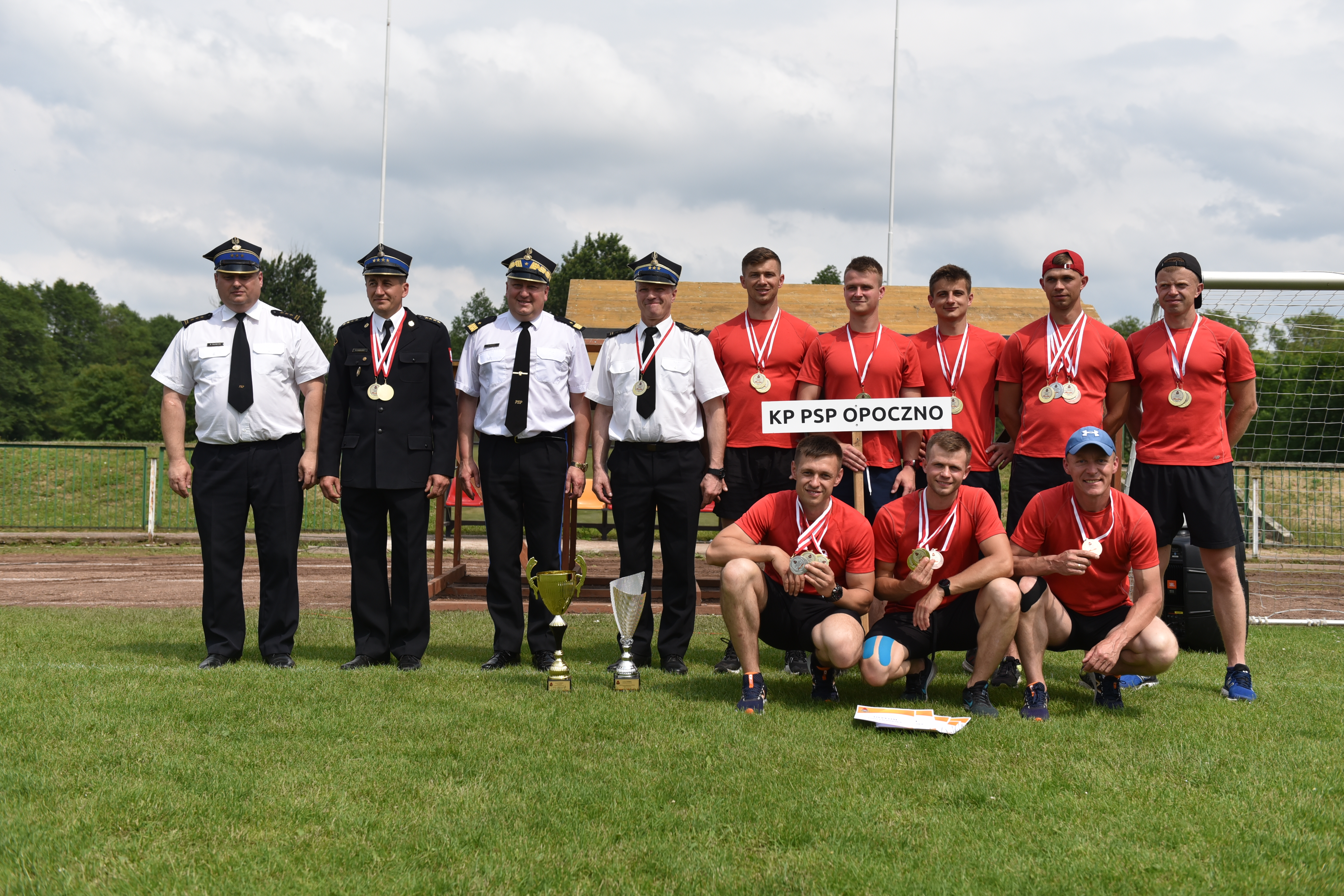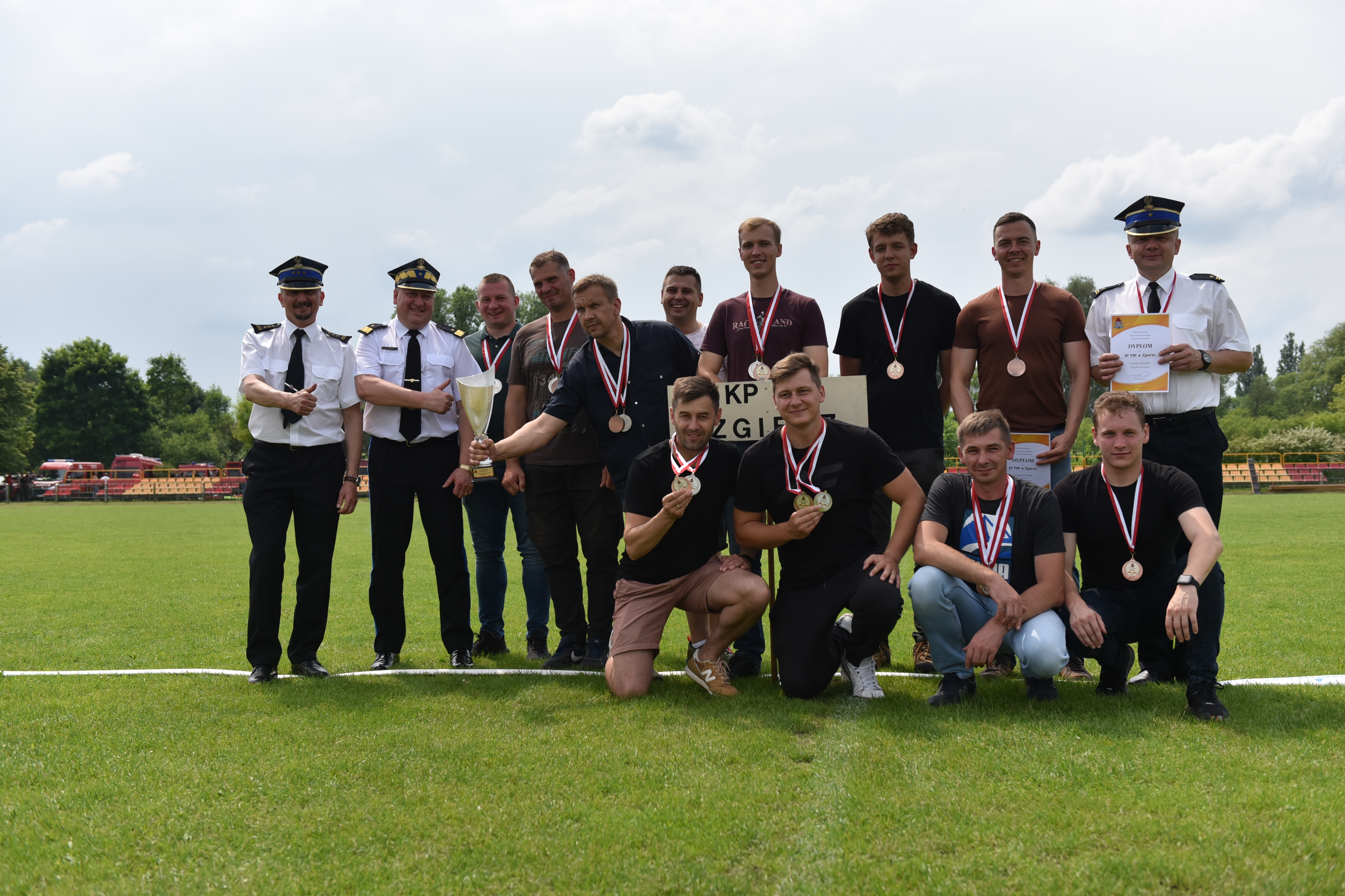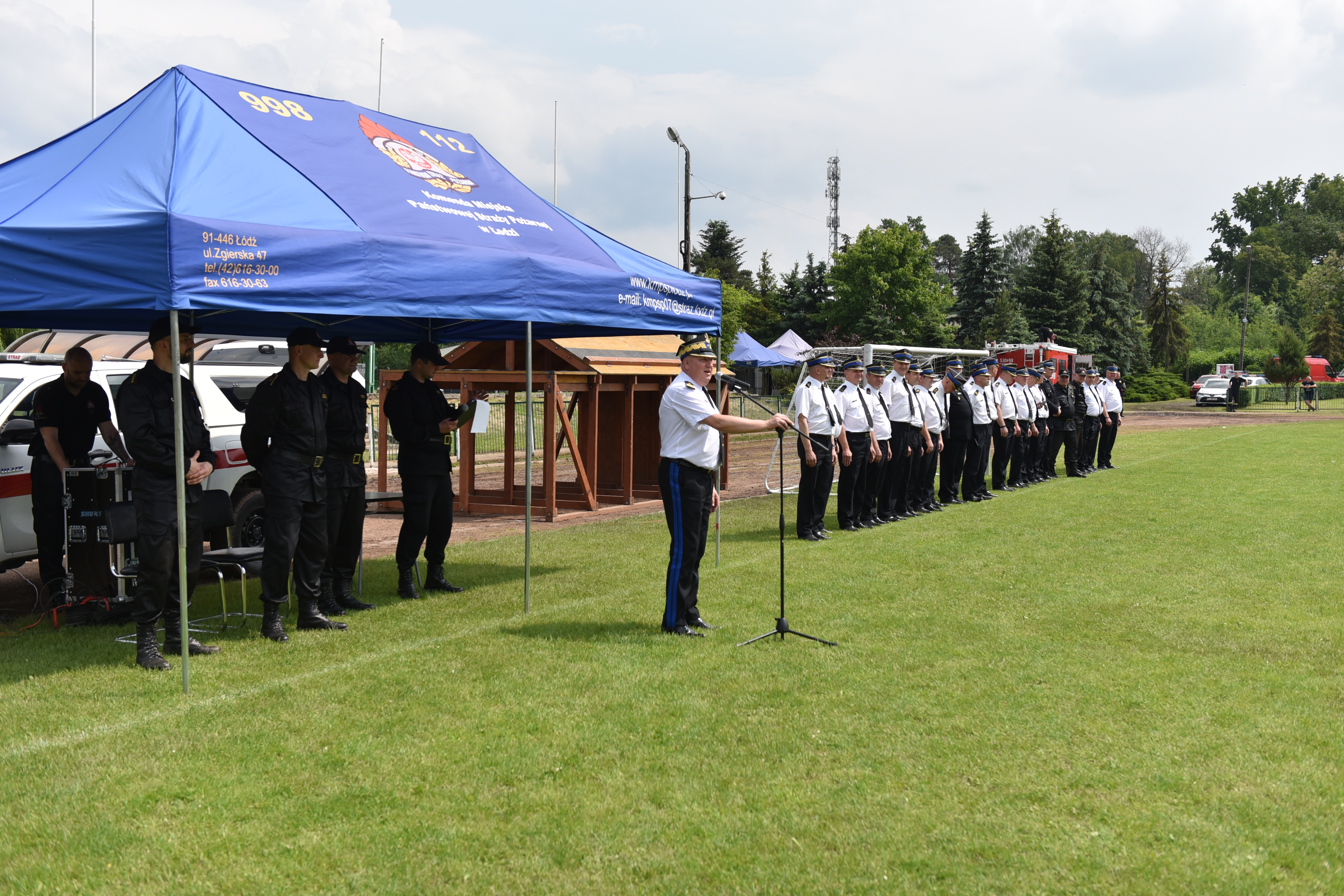 Uroczystego wręczenia pucharów, medali i dyplomów dokonali nadbryg. Grzegorz Janowski Łódzki Komendant Wojewódzki PSP w Łodzi wraz z zastępcą st. bryg. Pawłem Malinowskim oraz gospodarz mistrzostw st. bryg. Piotr Rudecki Komendant Powiatowy PSP w Łasku.
