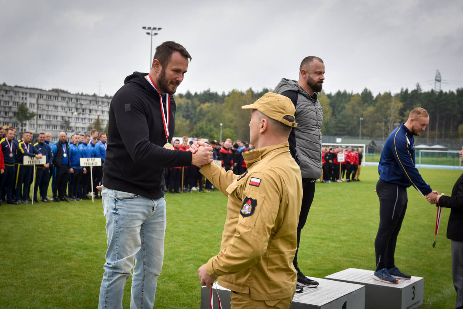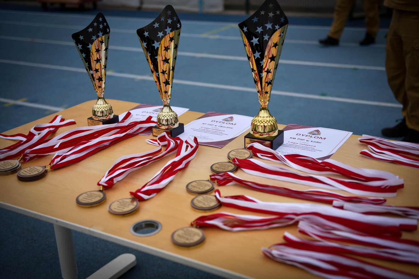 Uroczystego wręczenia pucharów, medali i dyplomów dokonali st. bryg. Mariusz Wojcieszko Zastępca Łódzkiego Komendanta Wojewódzkiego PSP w Łodzi oraz Mirosław Mielus Dyrektor Powiatowego Centrum Sportu w Bełchatowie.
