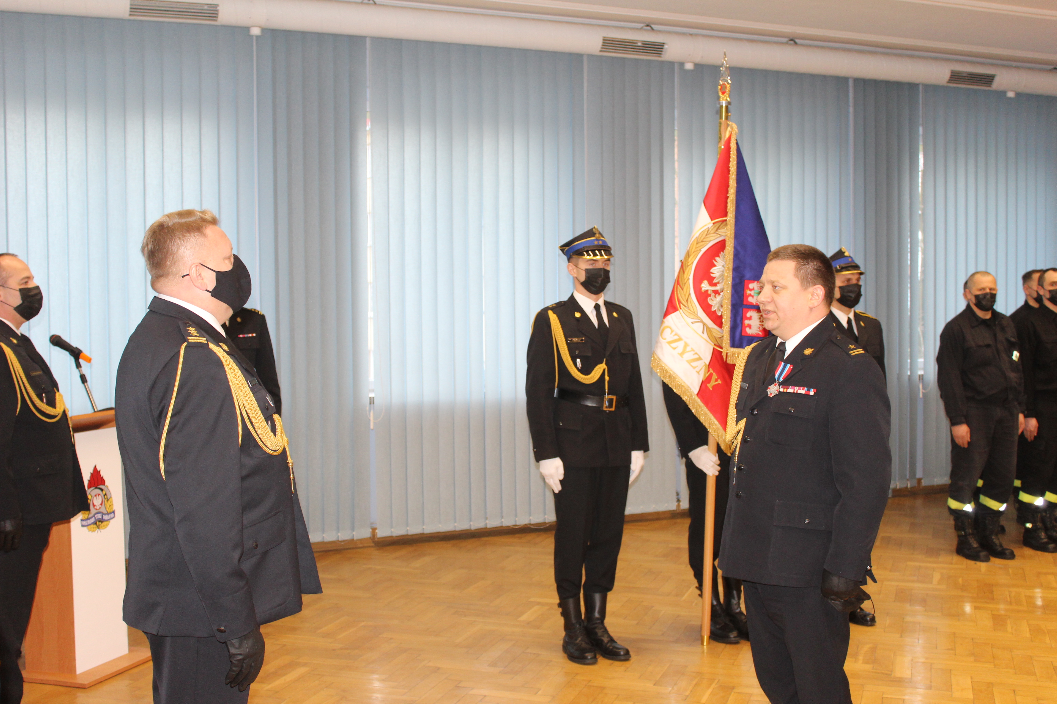 W czasie uroczystości st. bryg. Grzegorz Janowski Łódzki Komendant Wojewódzki PSP przyjął ich rezygnacje oraz powierzył obowiązki komendantów PSP: