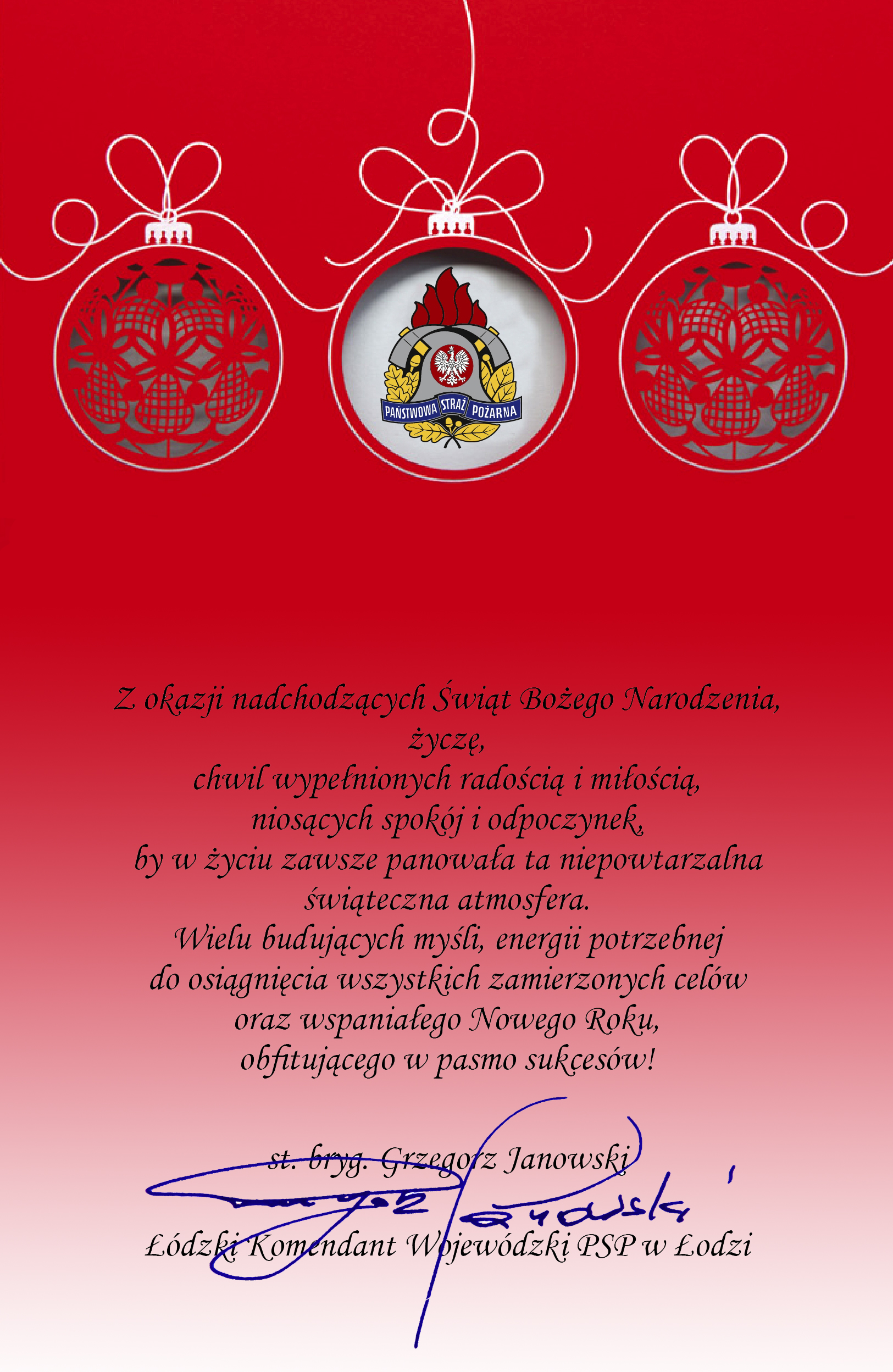 Życzenia Świąteczne Łódzkiego Komendanta Wojewódzkiego PSP w Łodzi 22.12.2021 Zdjęcia (1) Pokaż zdjęcie 1 z galerii.