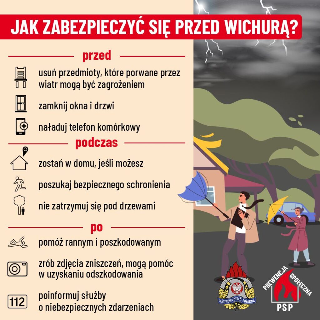 W grafice przypominamy kilka zasad, jak należy się zachować podczas burzy i wichur.