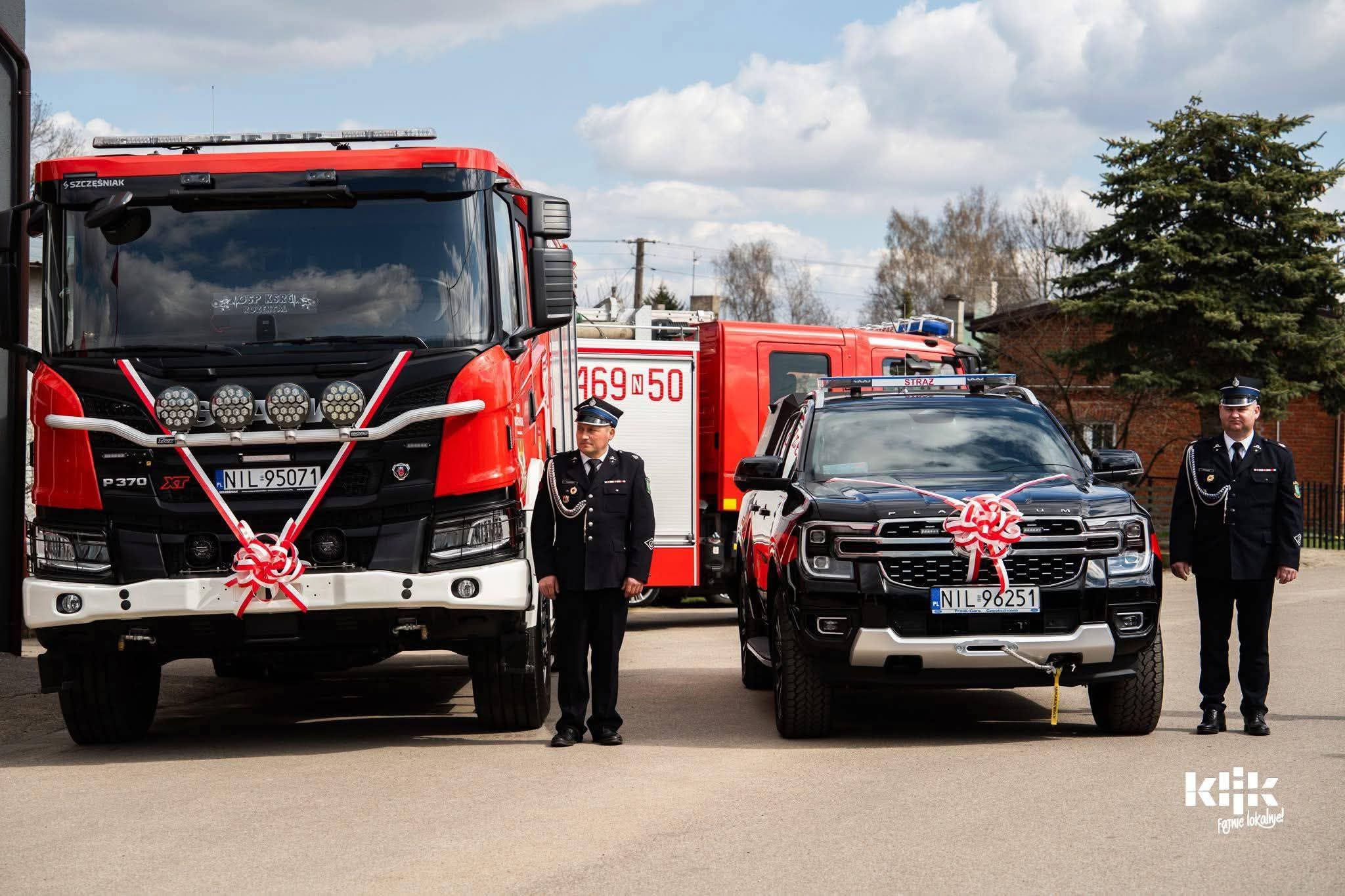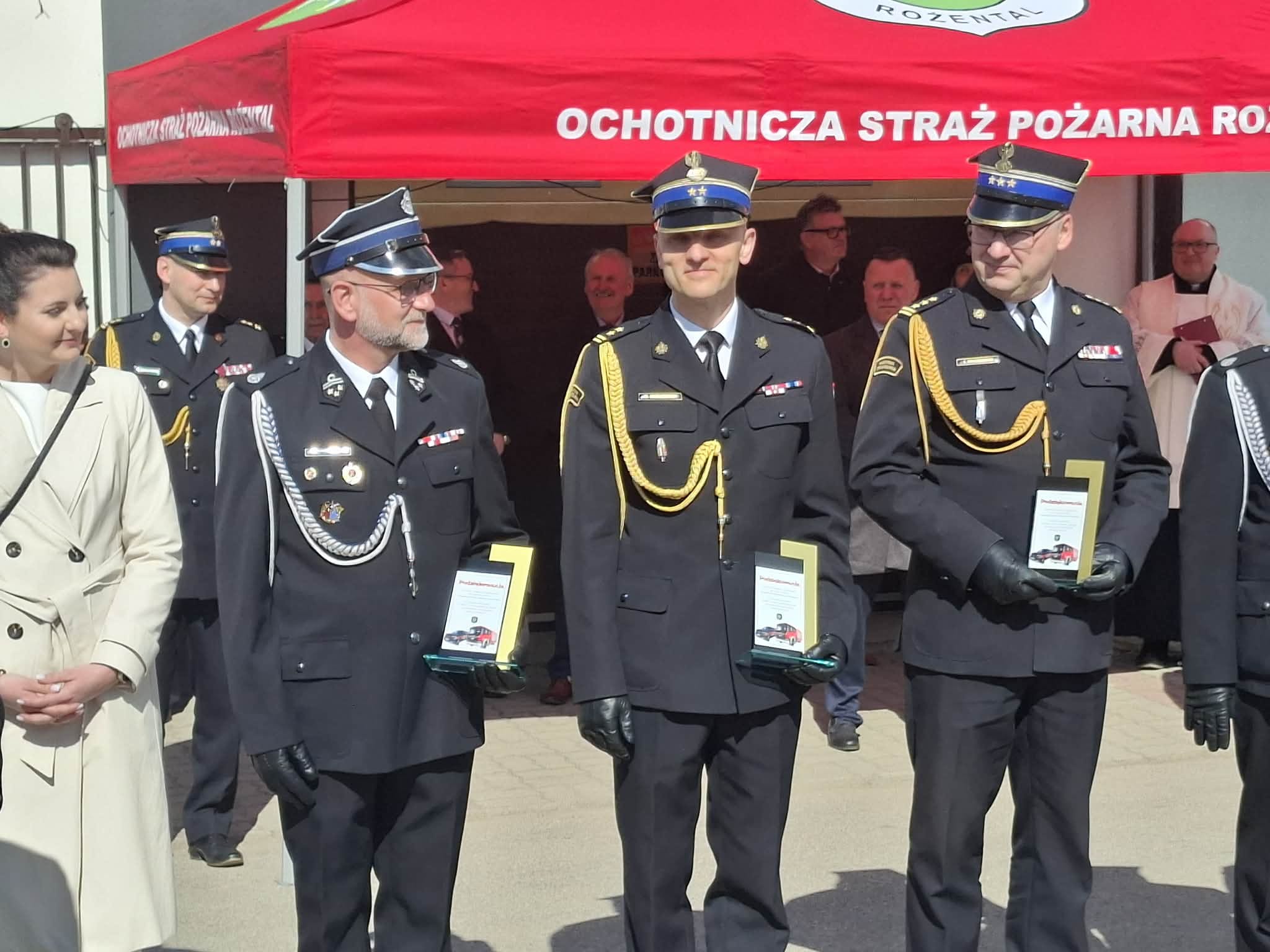 Podczas uroczystości oficjalnie przekazano do OSP Rożental dwa pojazdy pożarnicze: ciężki samochód ratowniczo-gaśniczy na podwoziu marki Scania oraz samochód rozpoznawczo ratowniczy marki Ford Ranger.
